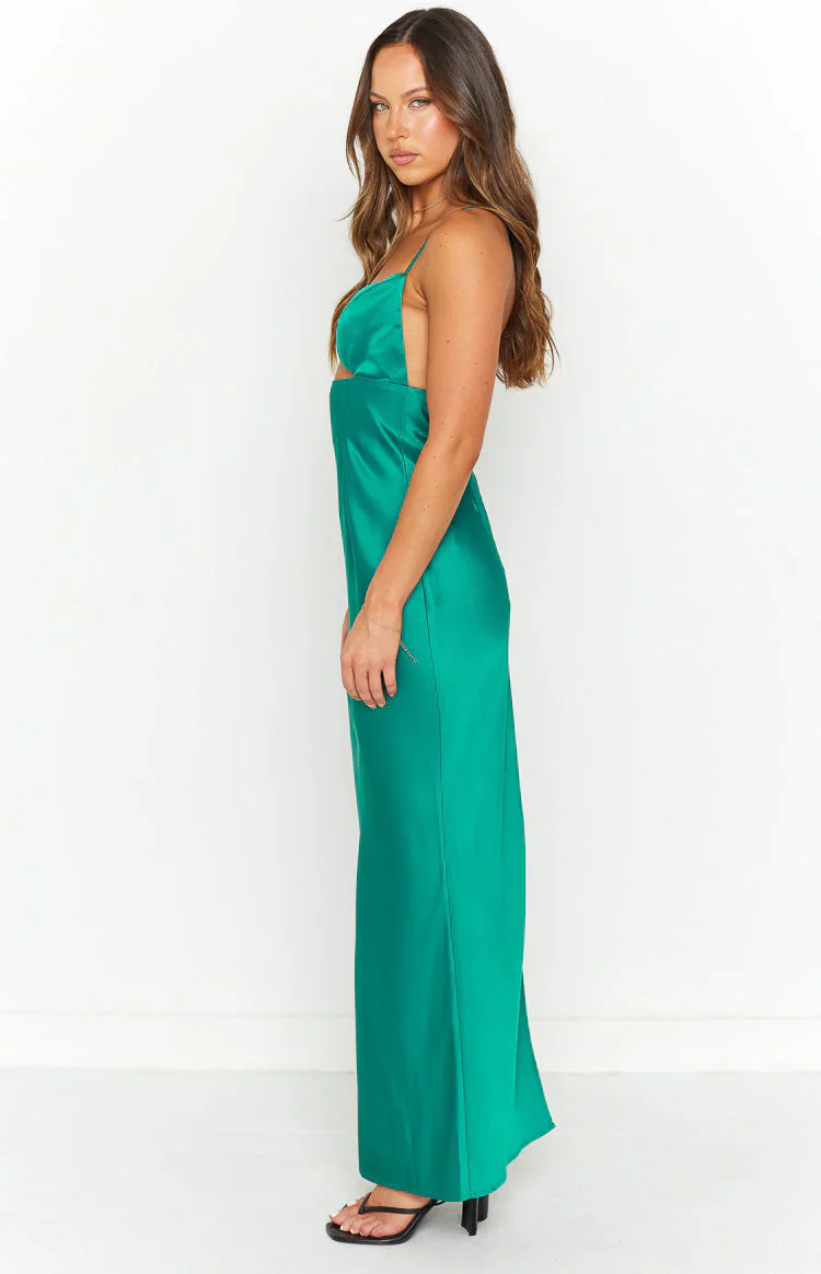 Hermitude Emerald Satin Maxi Formal Dress