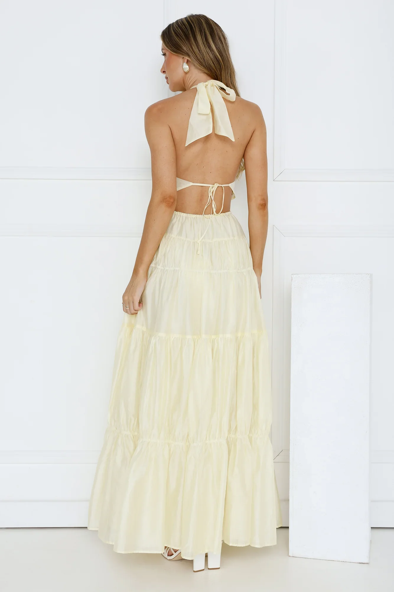 Unspoken Wishes Strapless Satin Maxi Dress Yellow