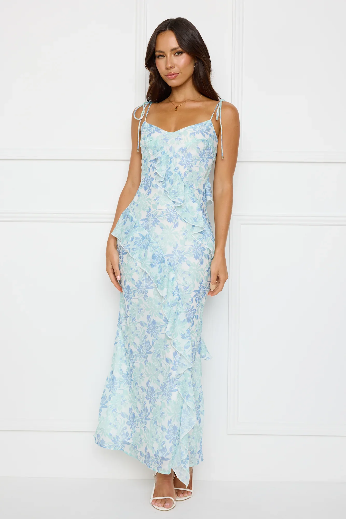Chiffon Cutout Ruffle Maxi Dress in Navy