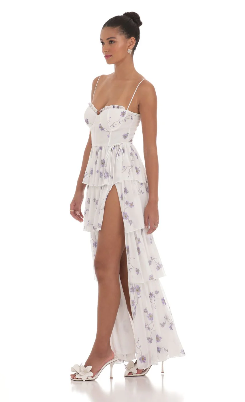 Lace Ruffle Sleeve Maxi Dress in Lavender