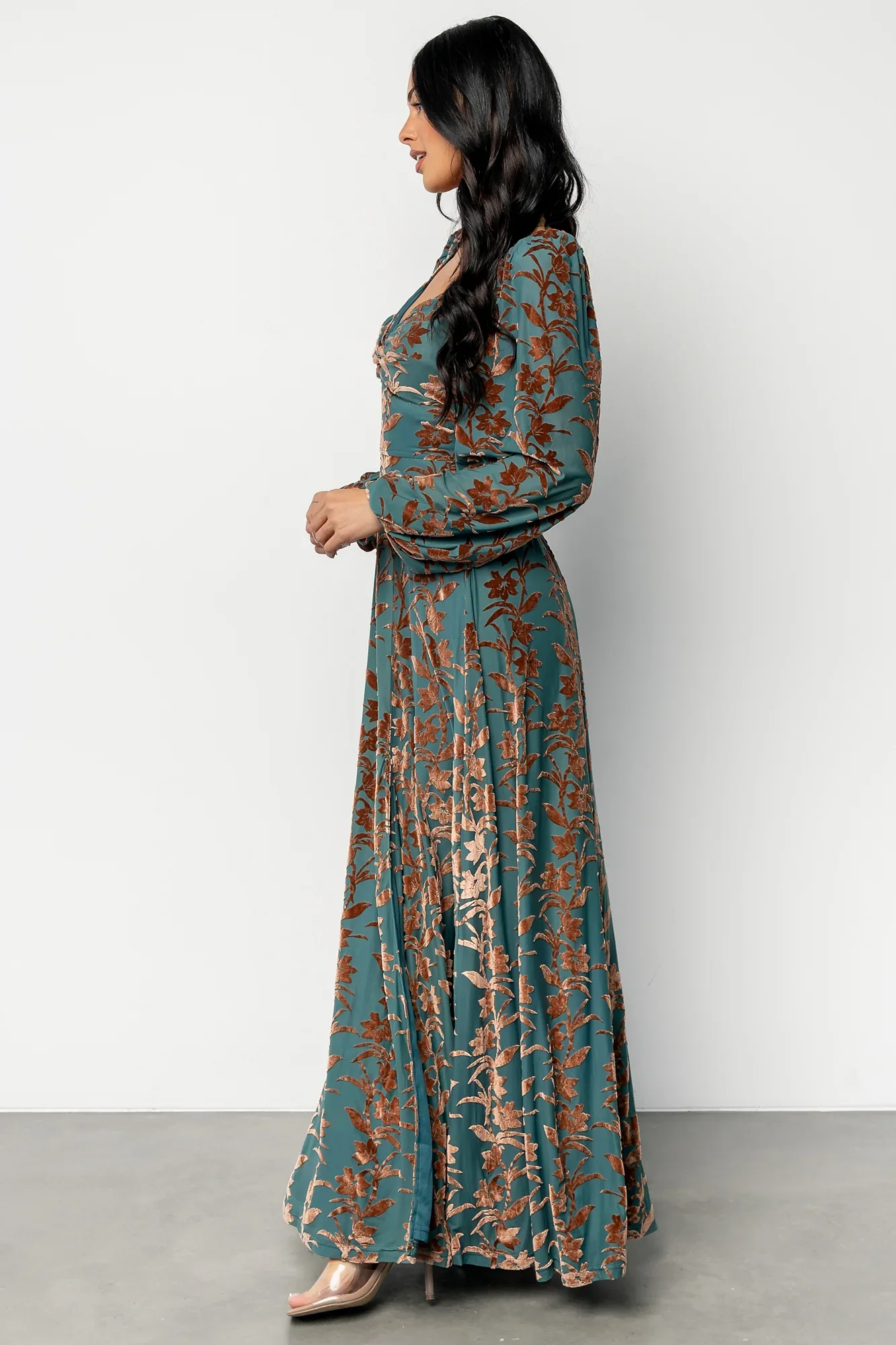 Aurora Velvet Maxi Dress | Jade + Bronze Floral
