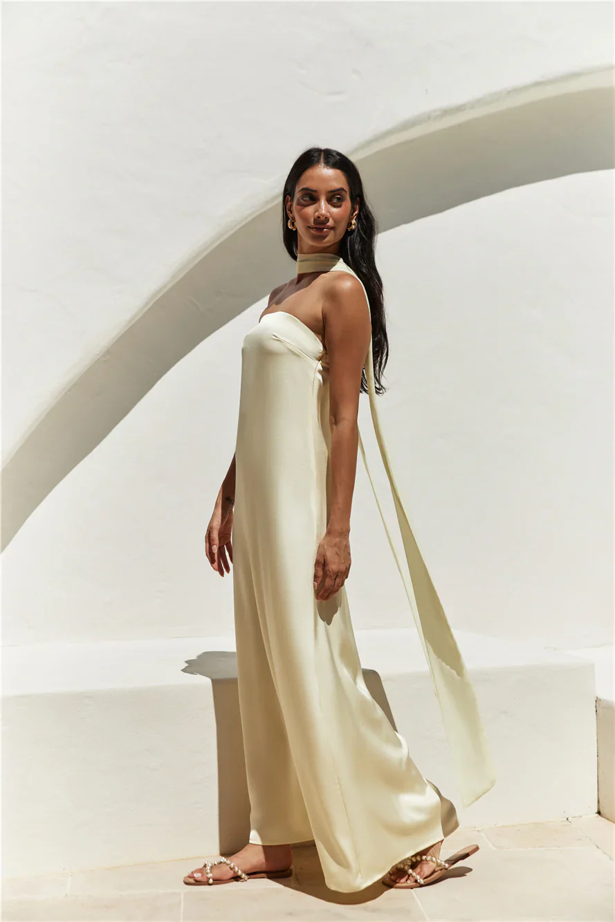 Radiant Rhythm Strapless Maxi Dress Yellow