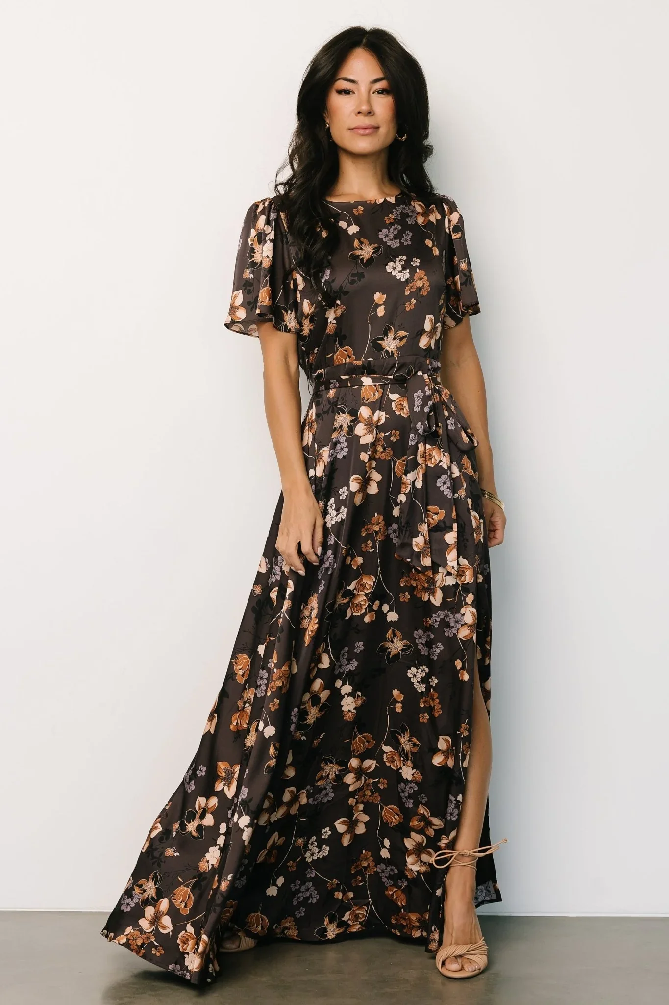 Agnes Satin Maxi Dress | Brown Floral