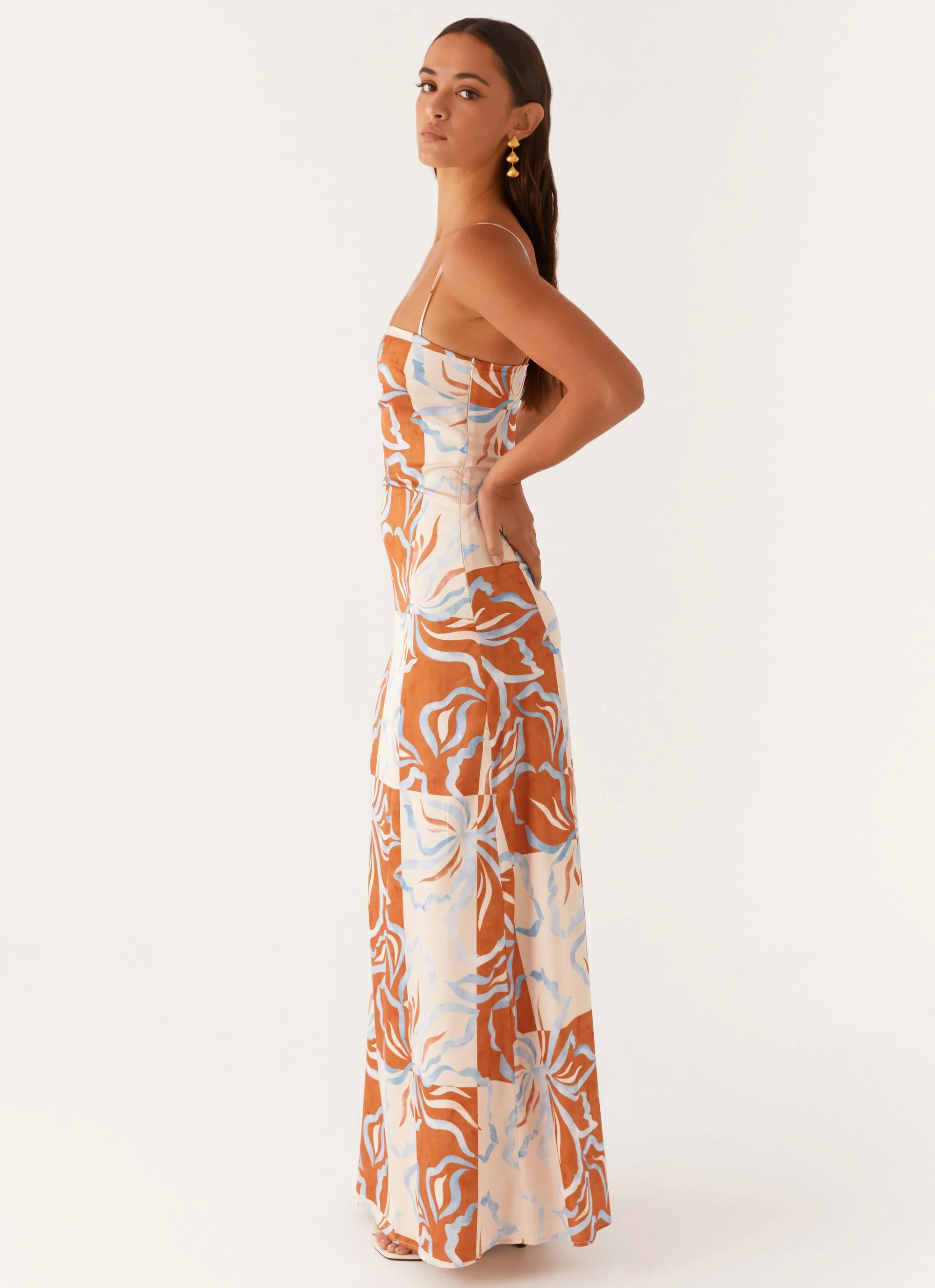 Aster Bloom Maxi Dress - Orange Blue Floral