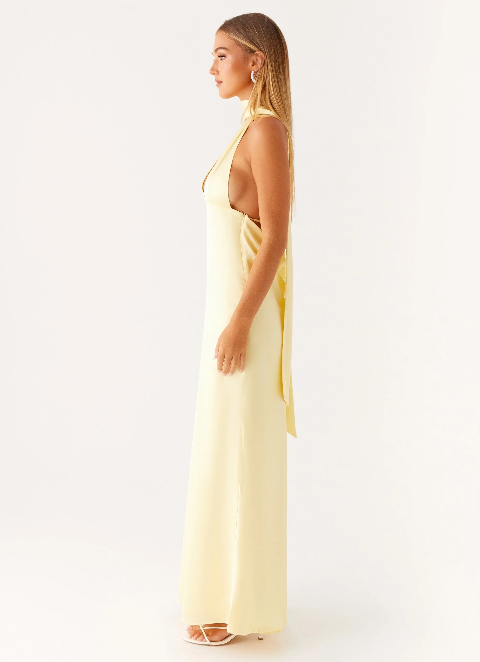 Alicia Satin Halter Maxi Dress - Yellow