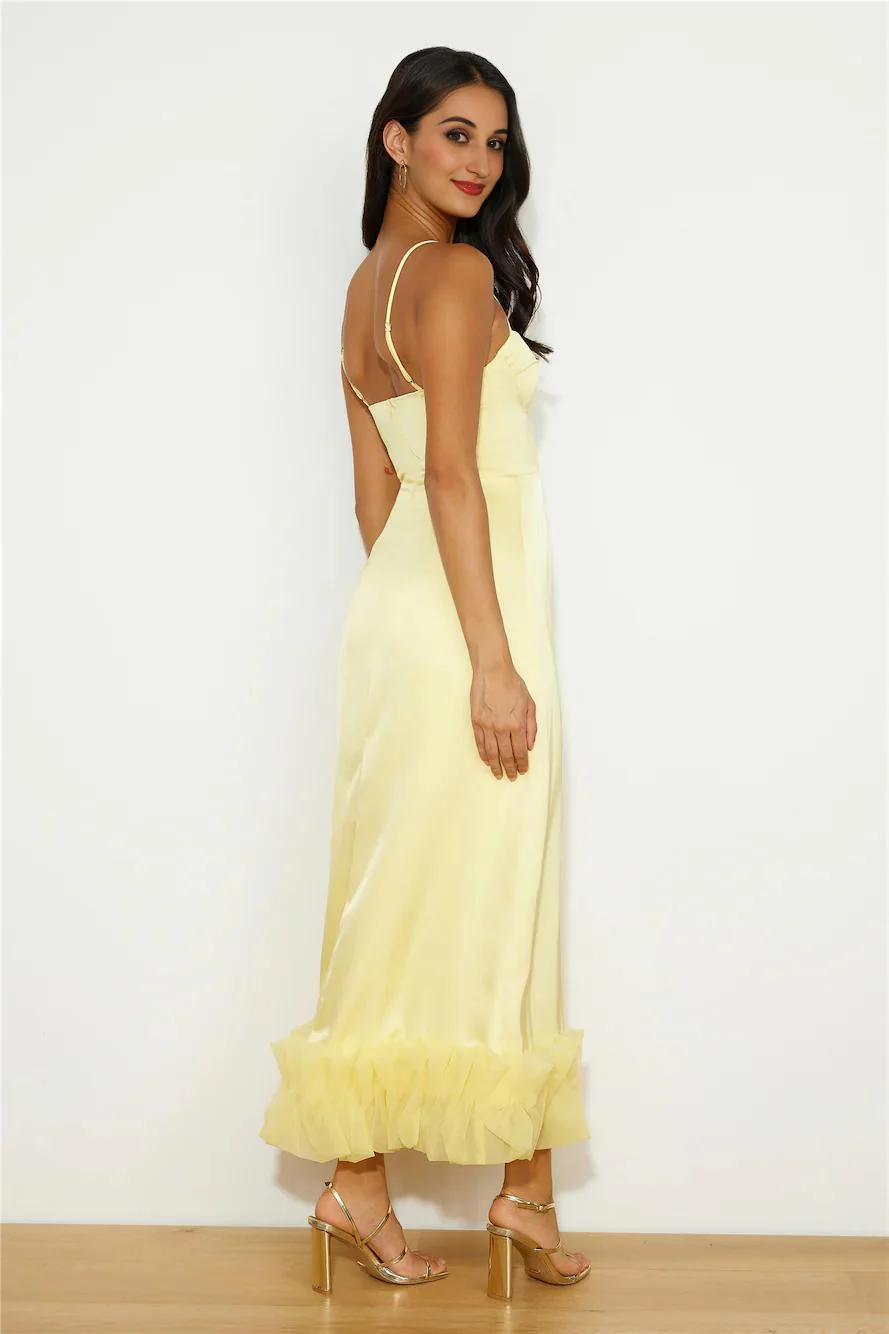 All Your Attention Satin Maxi Dress Yellow