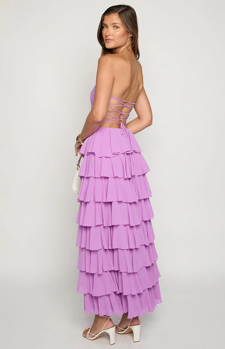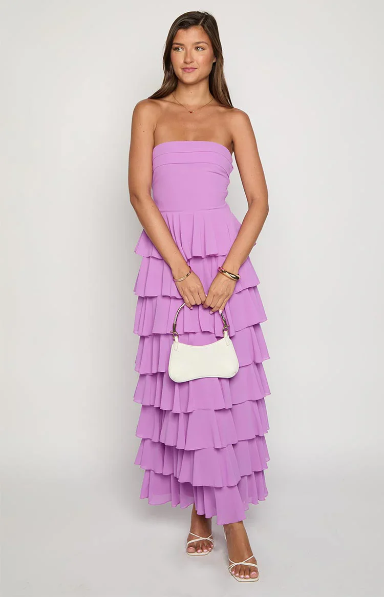 Kim Magenta Strapless Ruffle Maxi Dress