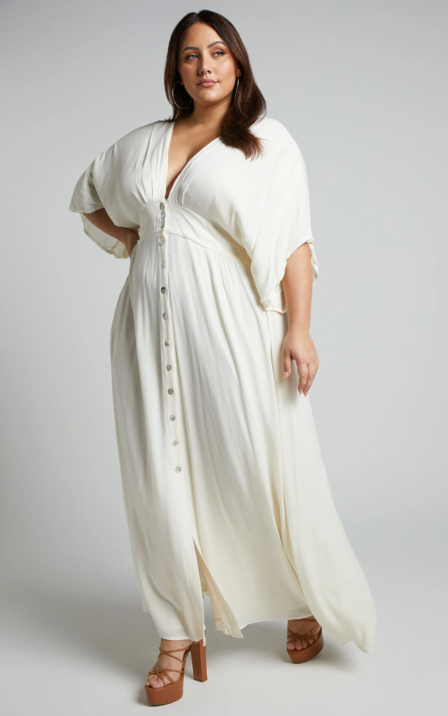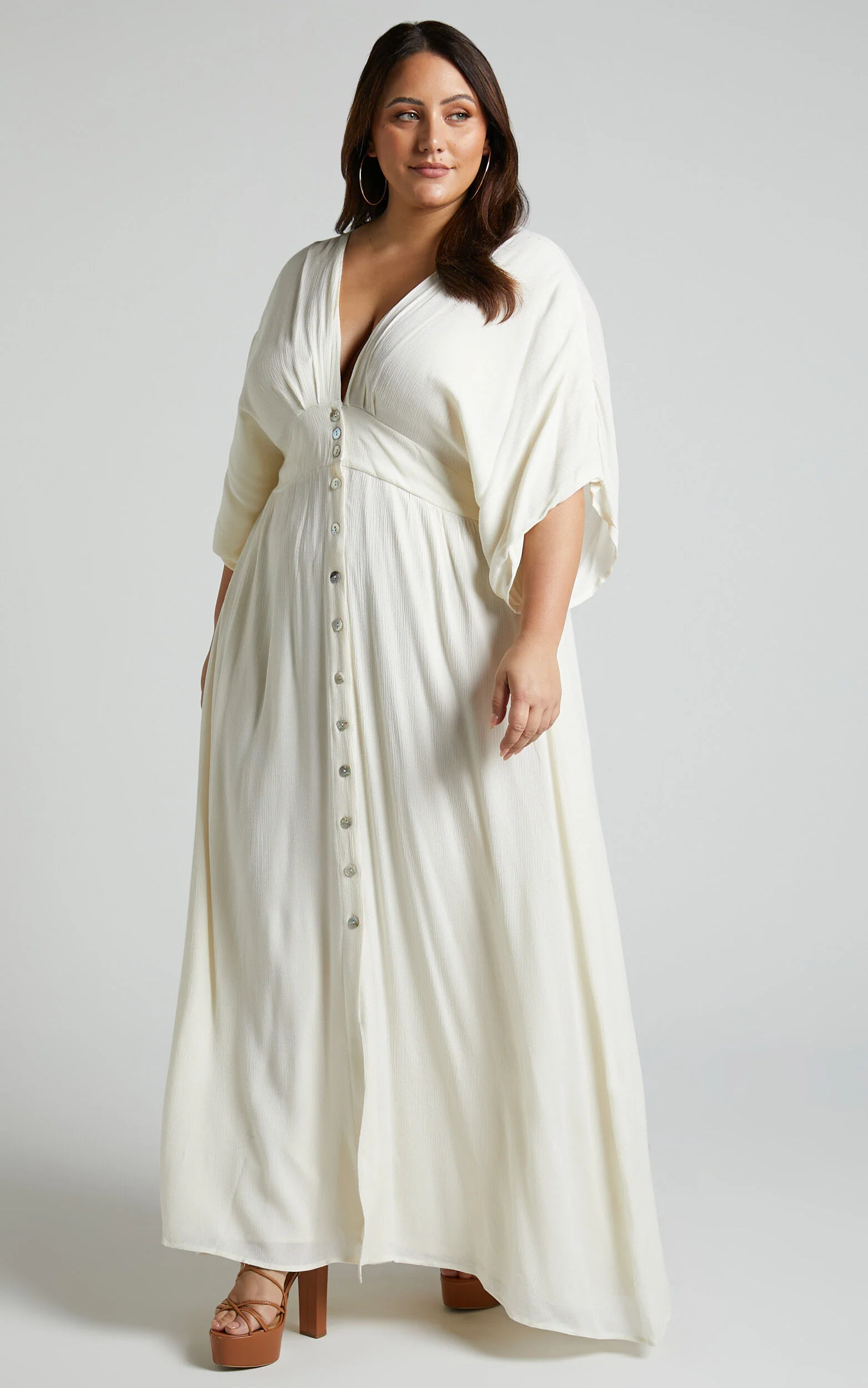 Sitting Pretty Maxi Dress - Short Sleeve Button Down Dress in Natural