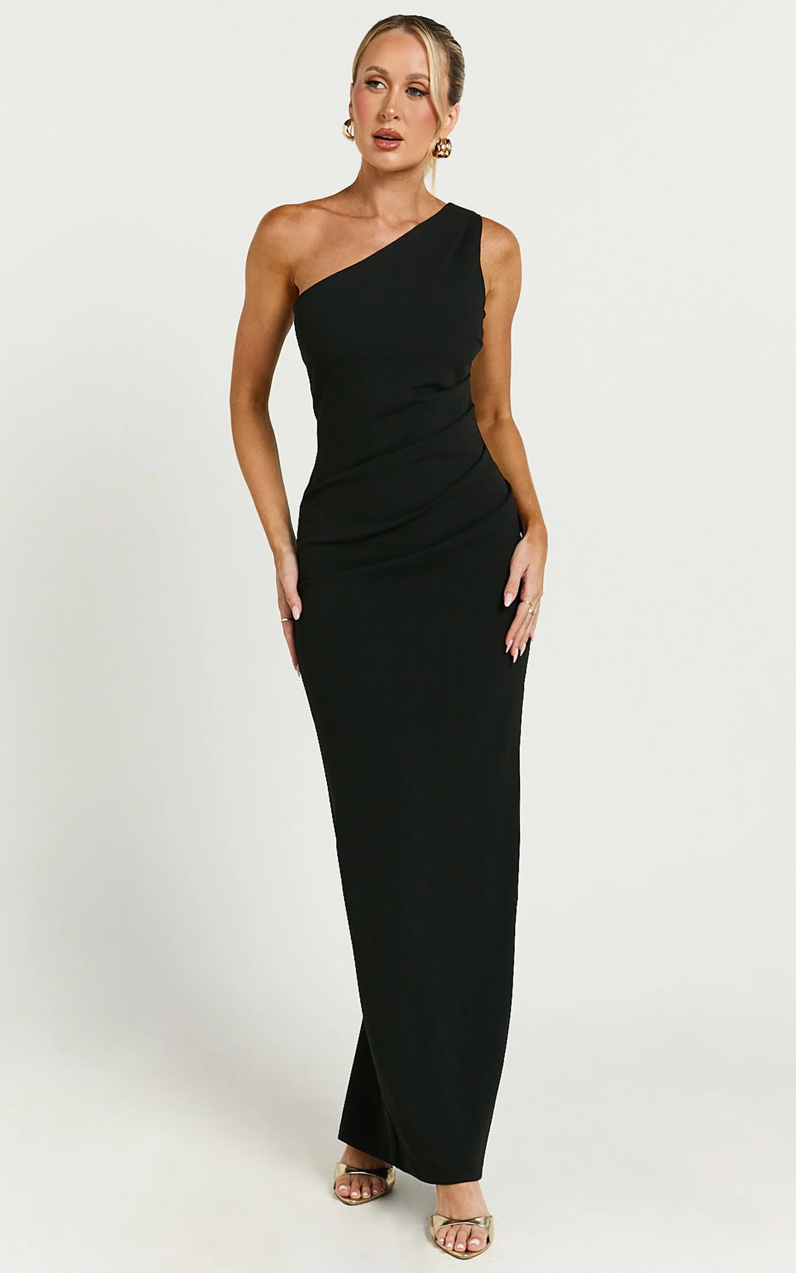 Criselda Maxi Dress - One Shoulder Maxi Dress in Black