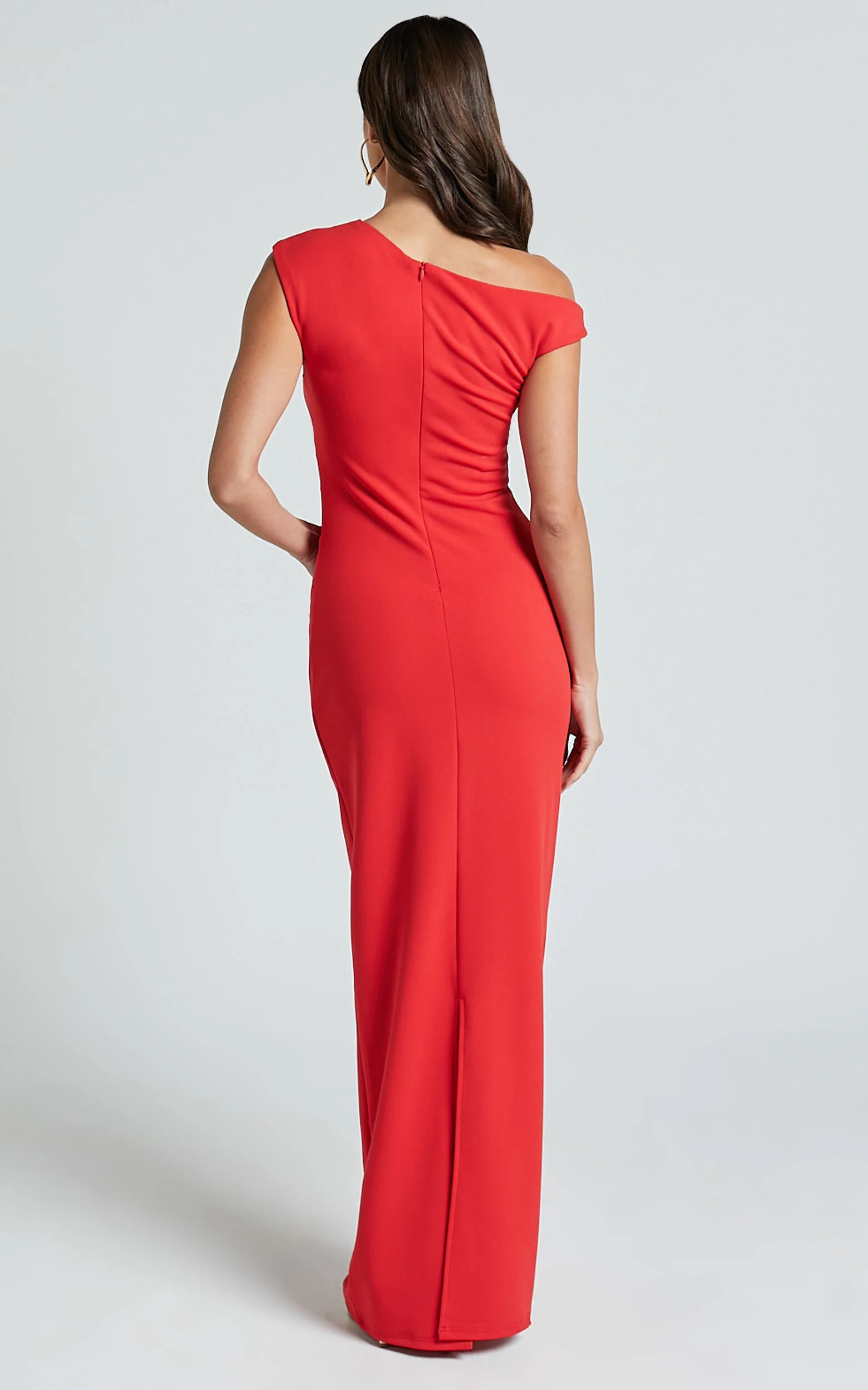 Genie Maxi Dress - Off The Shoulder Dress in Red