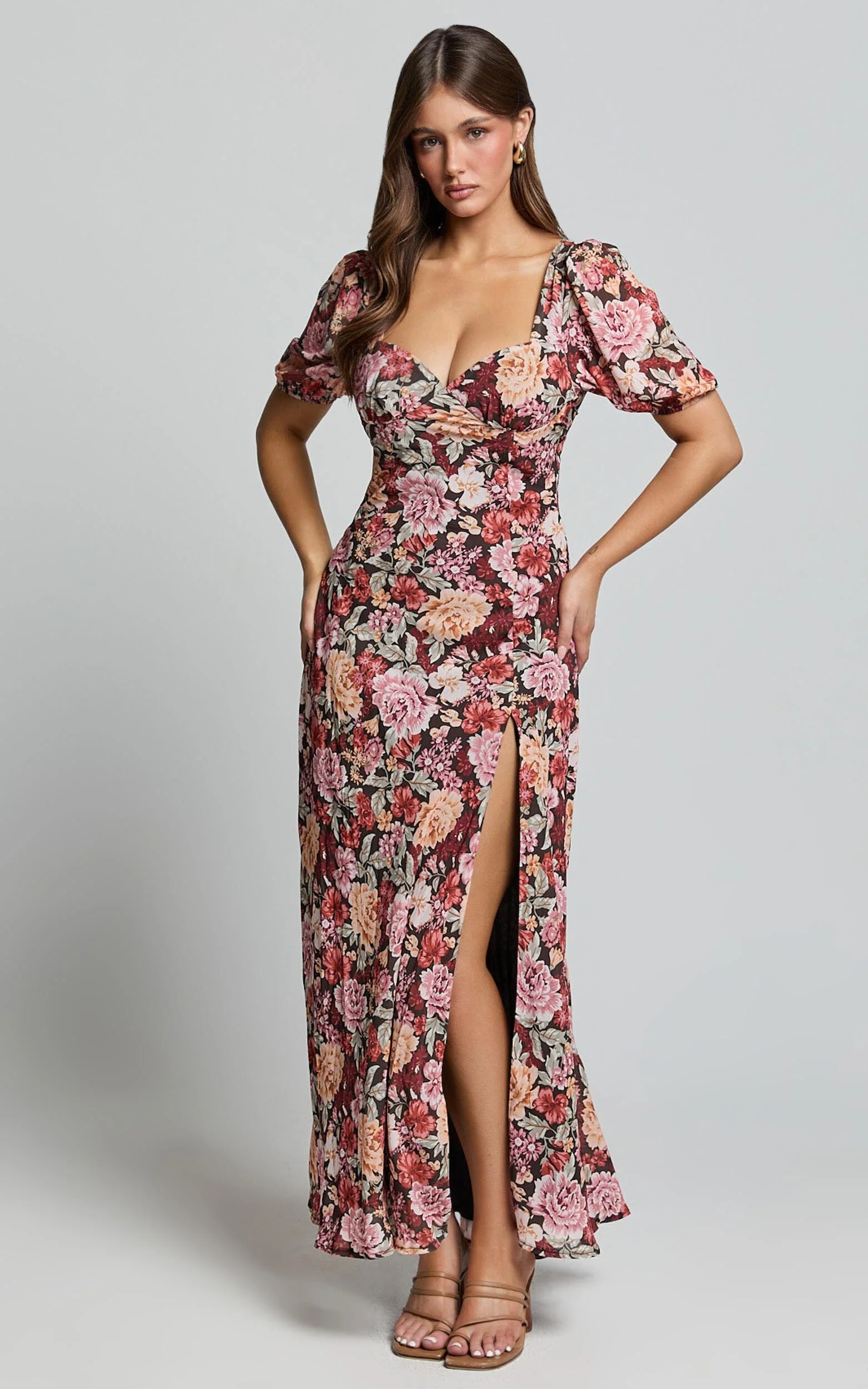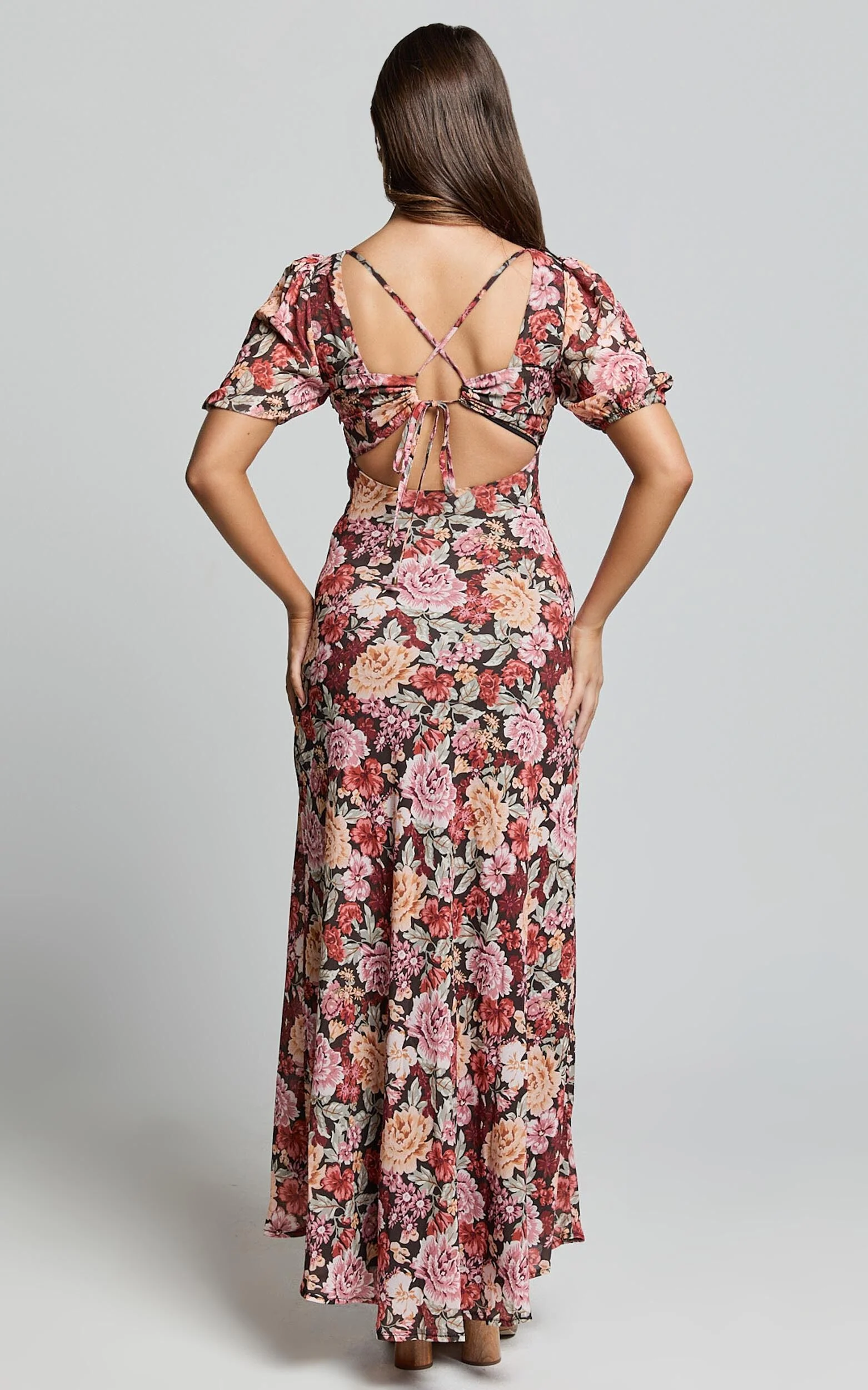 Lorie Maxi Dress - Short Sleeve Cut Out Tie Back Dress in Boheme Floral