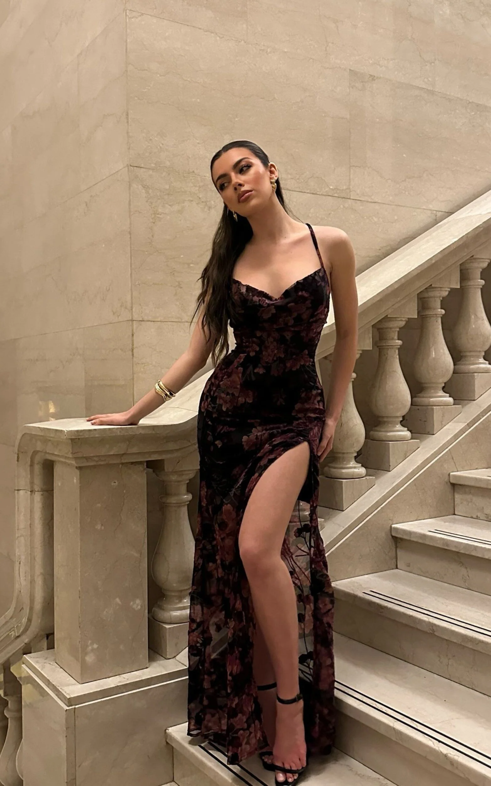 Aletta Maxi Dress - Cowl Cross Back Dress in Aletta Burn Out Floral
