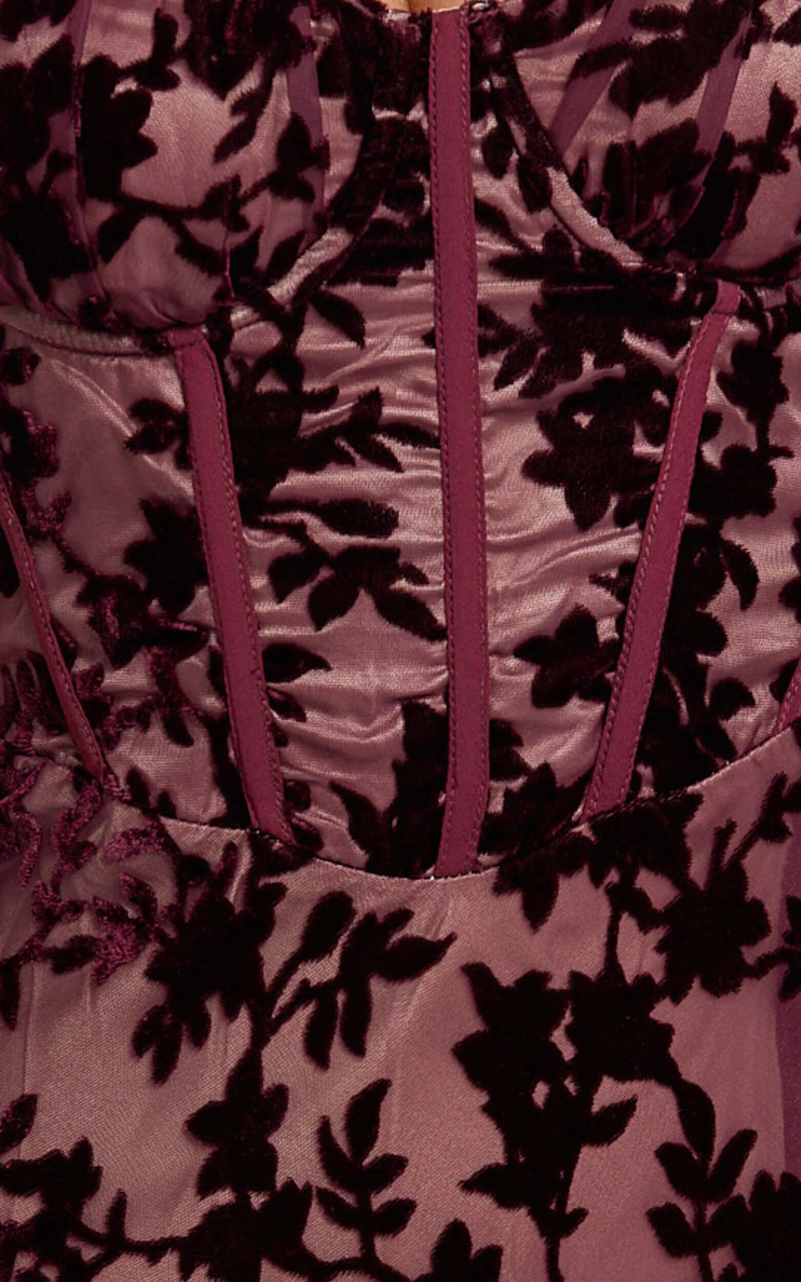 Violeta Maxi Dress - Corset Front Burnout Dress in Wine