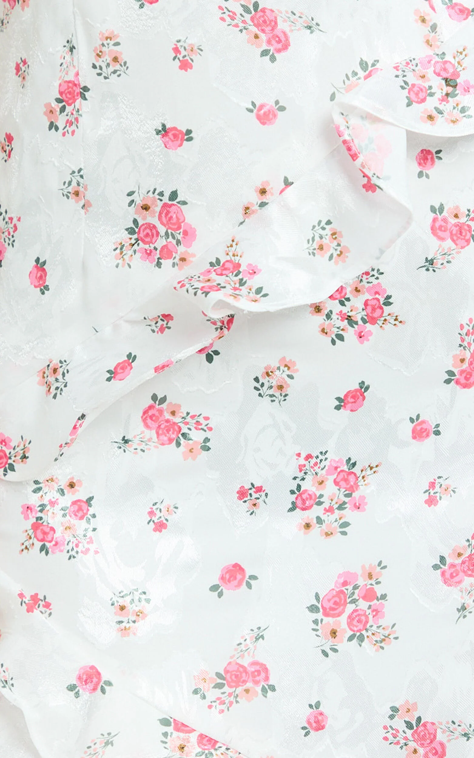Justine Maxi Dress - Jacquard V Neck Tiered Lace Trim Dress in Romantic Ditsy Print