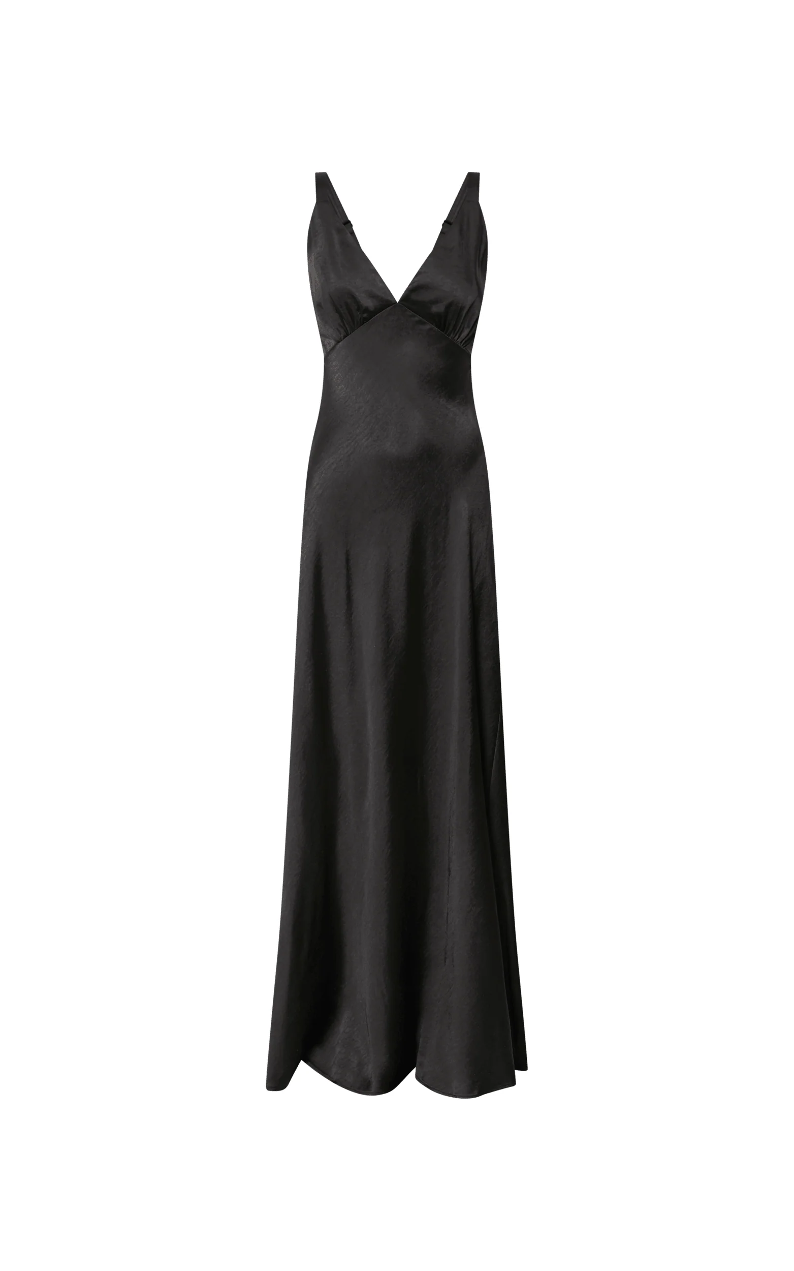 Anjorie Maxi Dress - Plunge Neck Wide Strap Sleeveless Slip in Black
