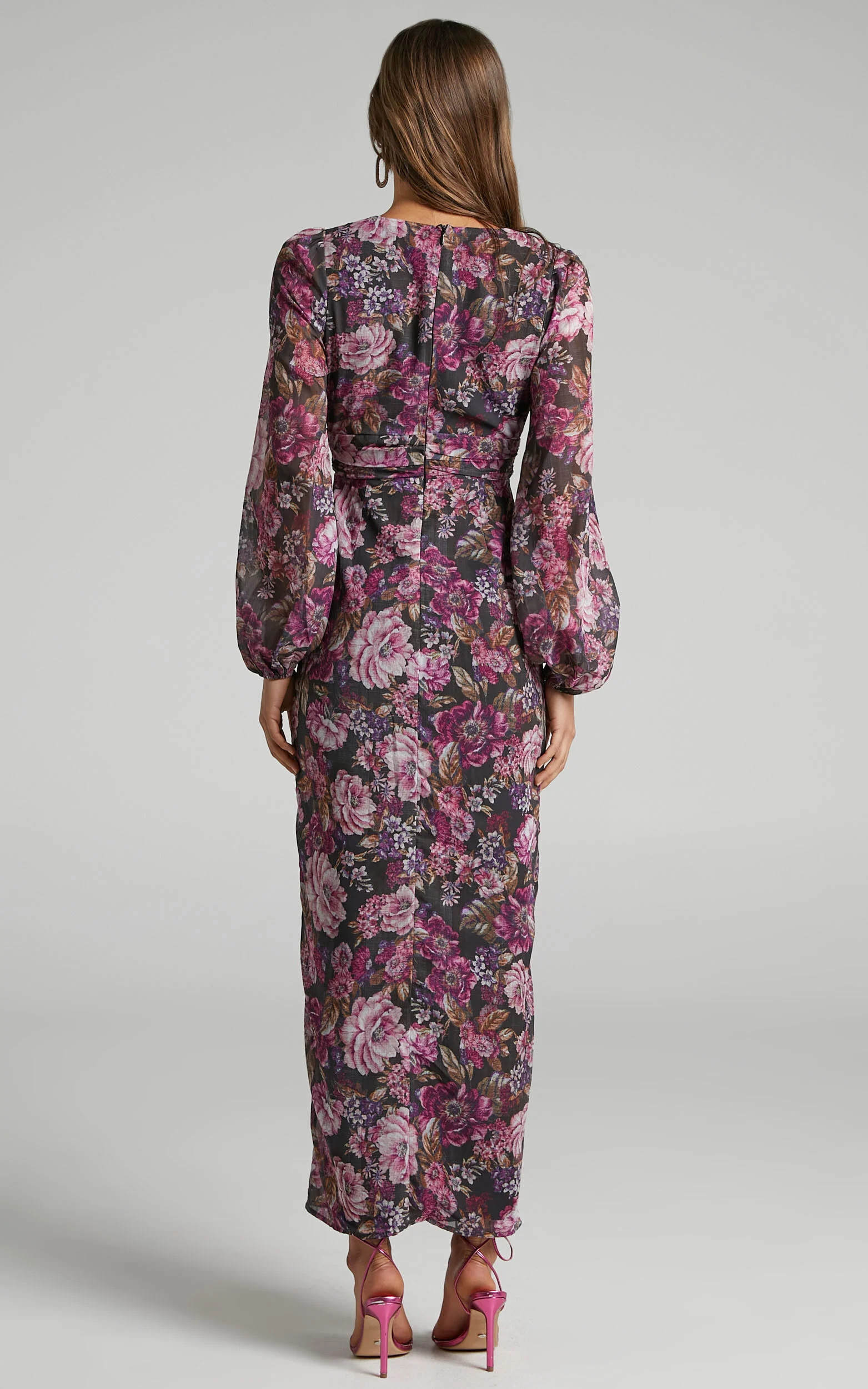 Lorelei Maxi Dress - V Neck Balloon Sleeve Dress in Harvest Floral