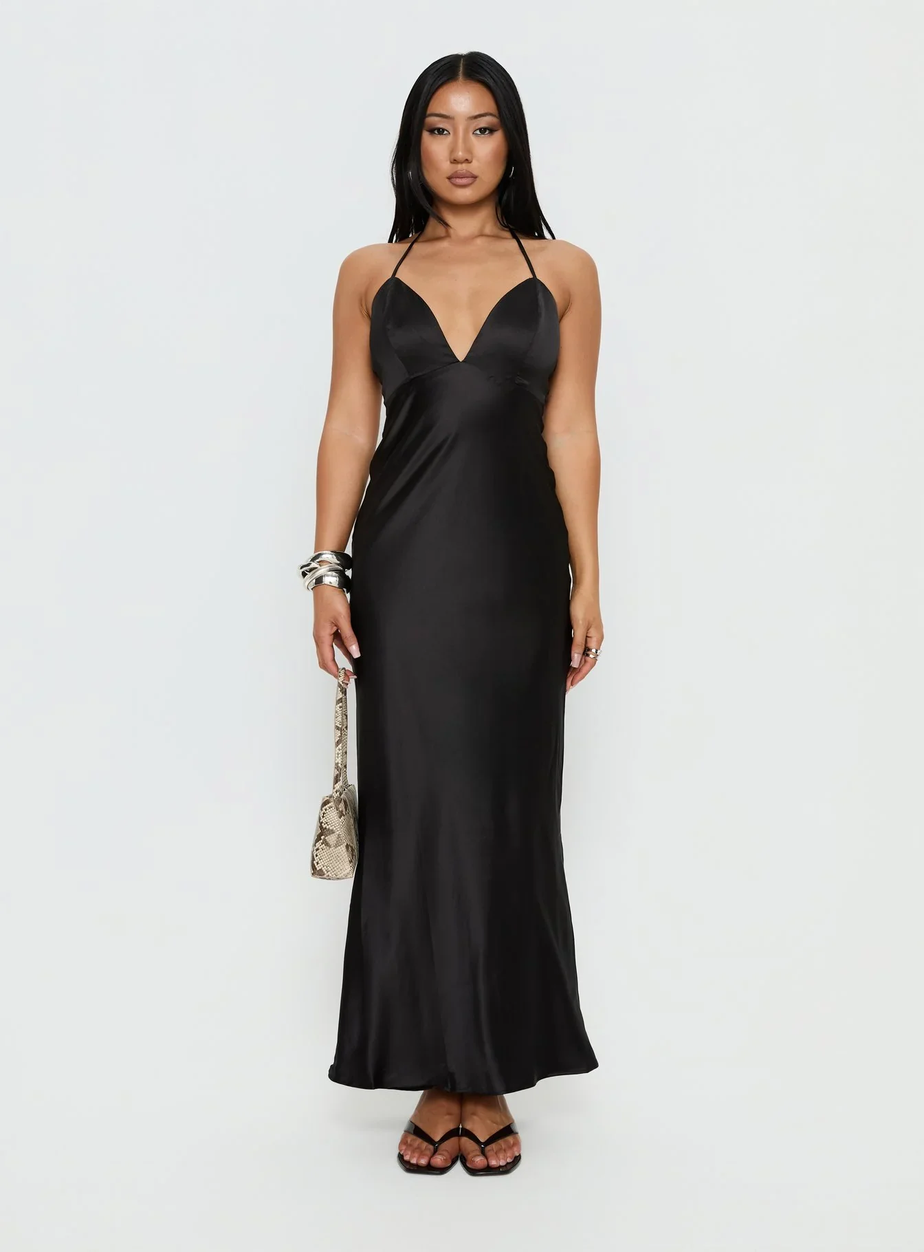 Marguerite Halter Maxi Dress Brown Polka Dot