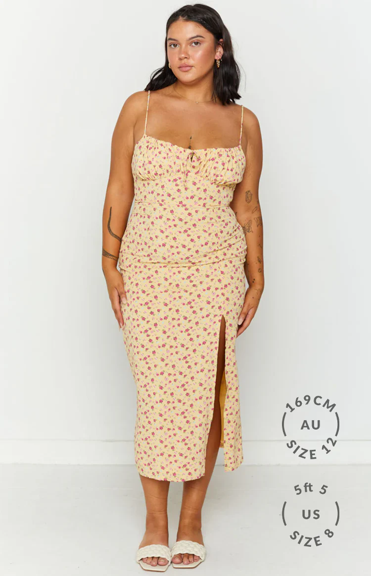 Paloma Yellow Floral Midi Dress