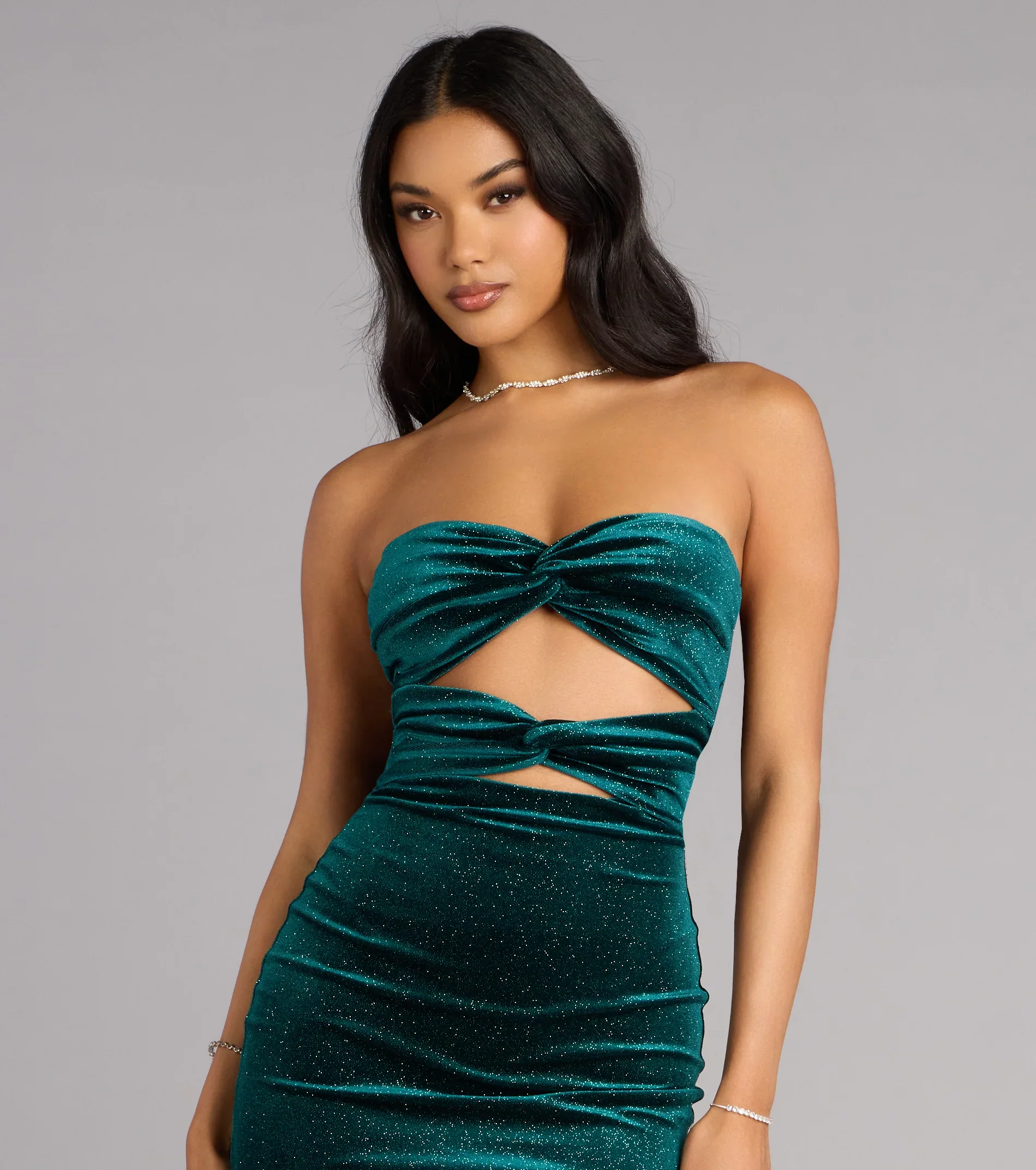 Midnight Spark Glitter Velvet Cutout Mini Dress