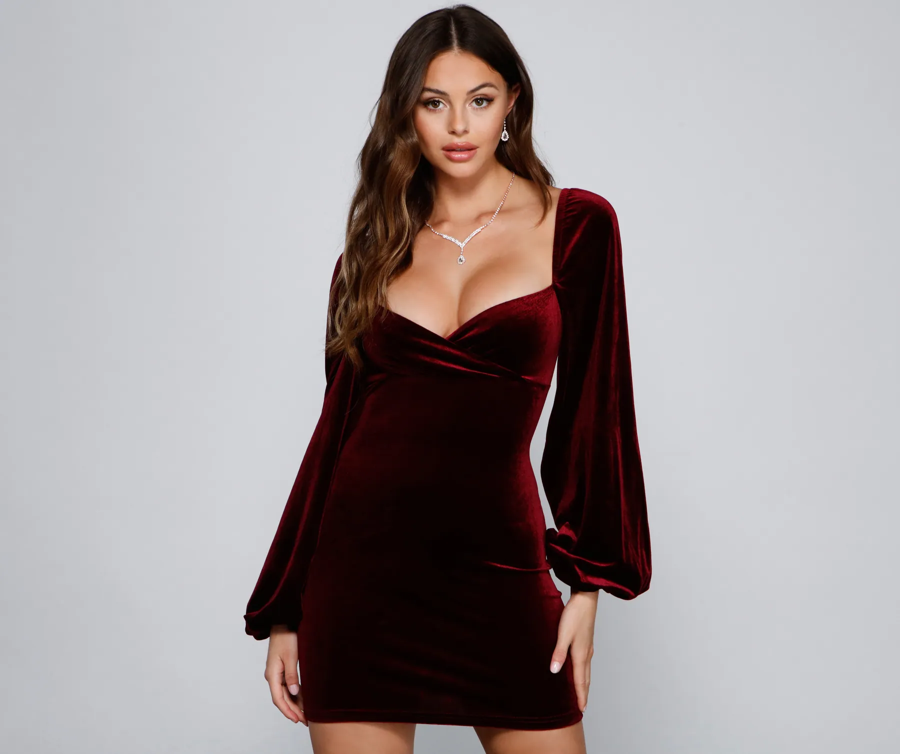 A Glam Life Velvet Surplice Mini Dress