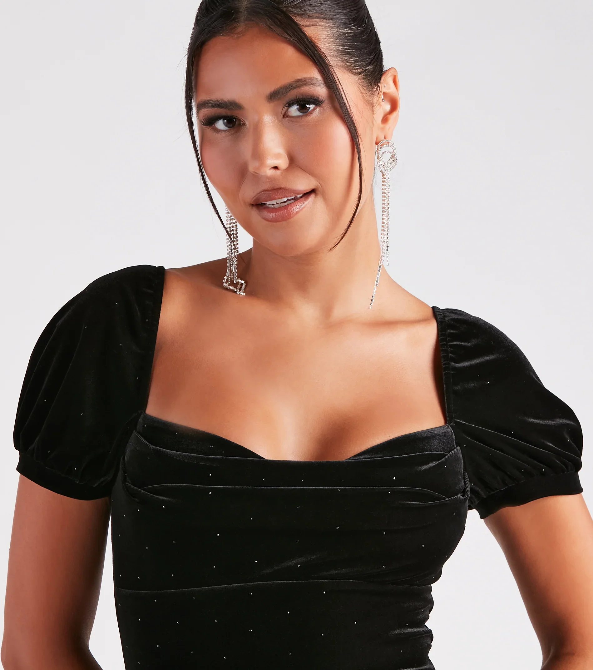 Glam On The Scene Velvet Rhinestone Mini Dress