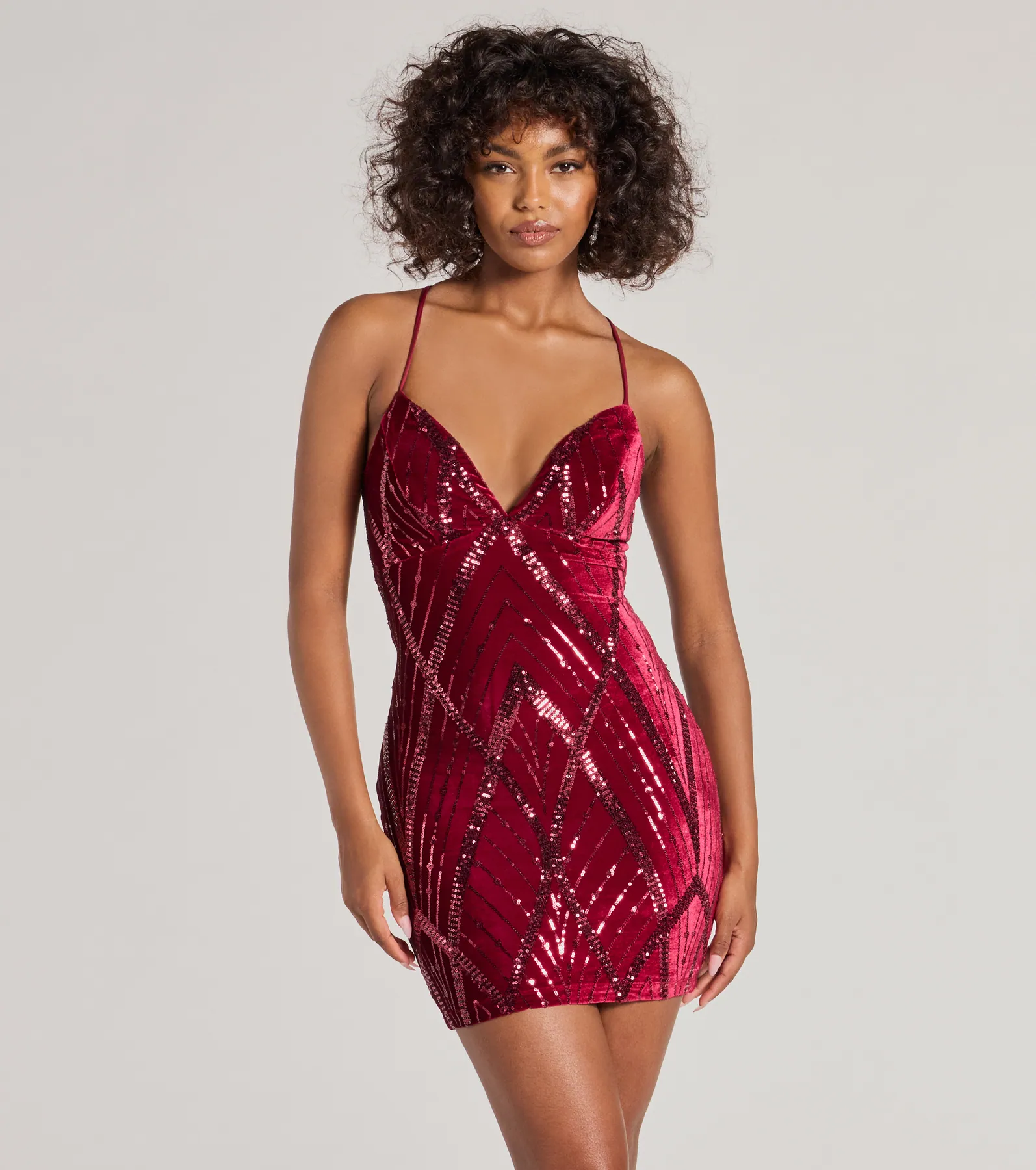 Aurora Sequin Velvet Lace-Up Mini Dress