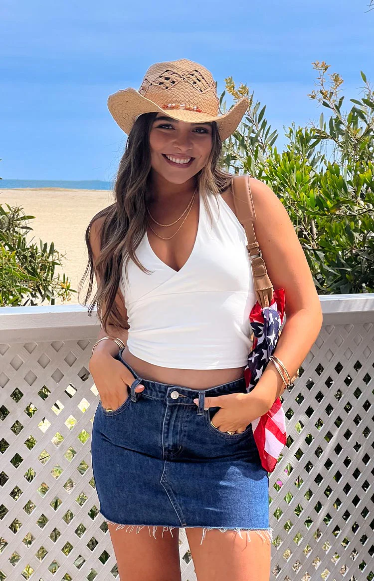 Siletto Star Blue Denim Low Rise Mini Skirt