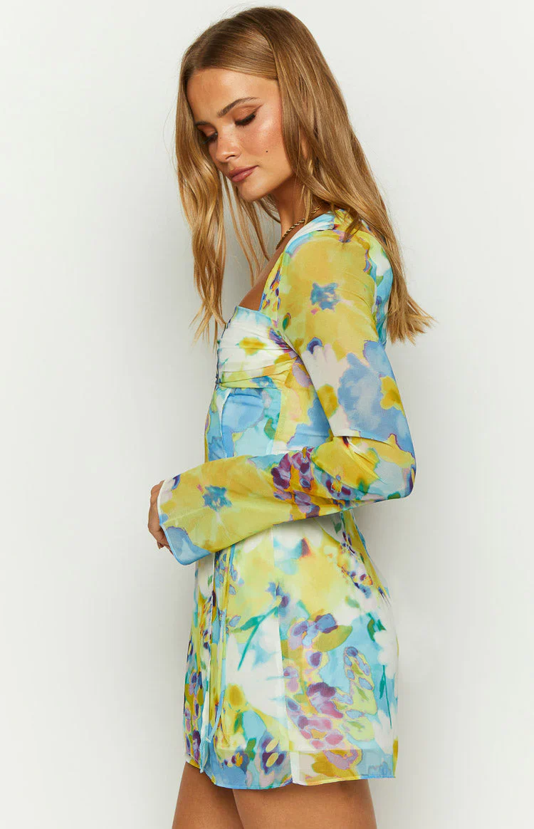 Primrose Blue Satin Off the Shoulder Mini Dress