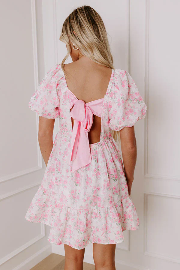 Adrienne Tulle Bow Train Babydoll Mini Dress