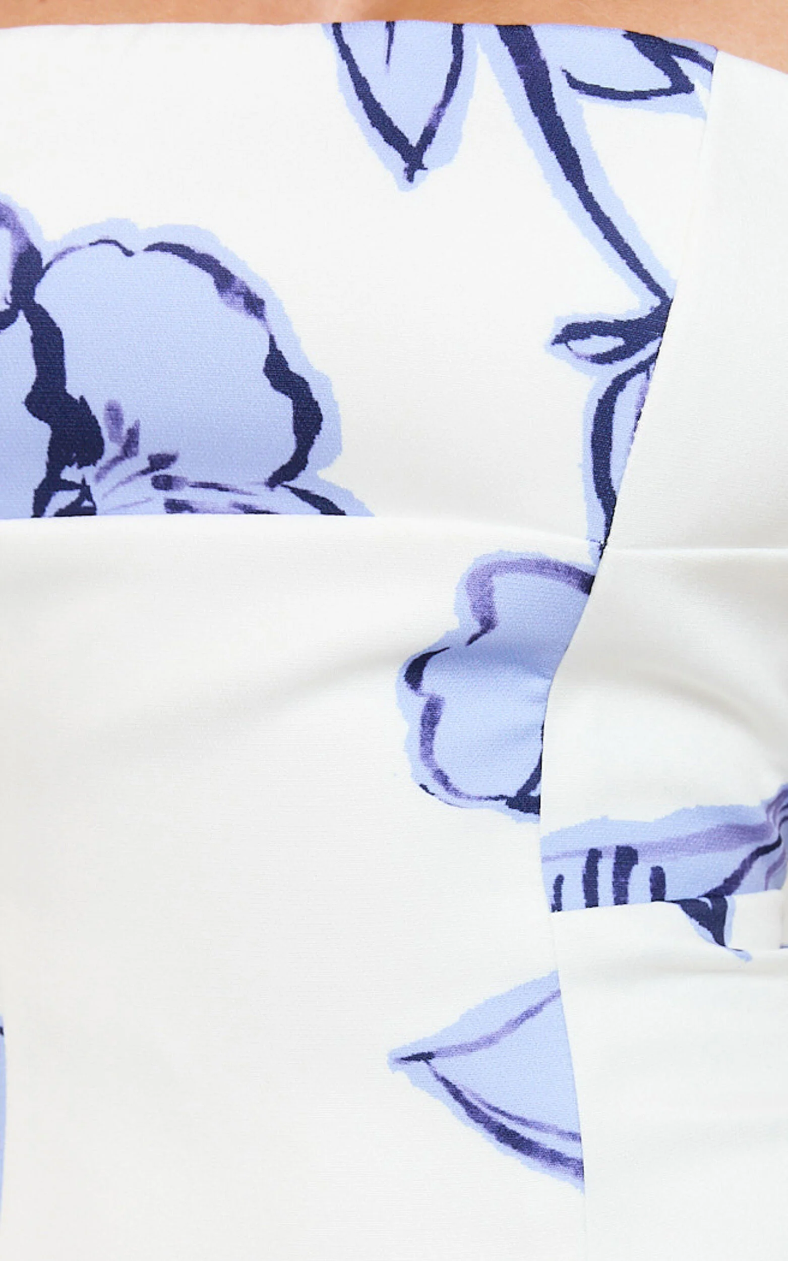 Catharine Mini Dress - Strapless A Line Dress in Blue Floral