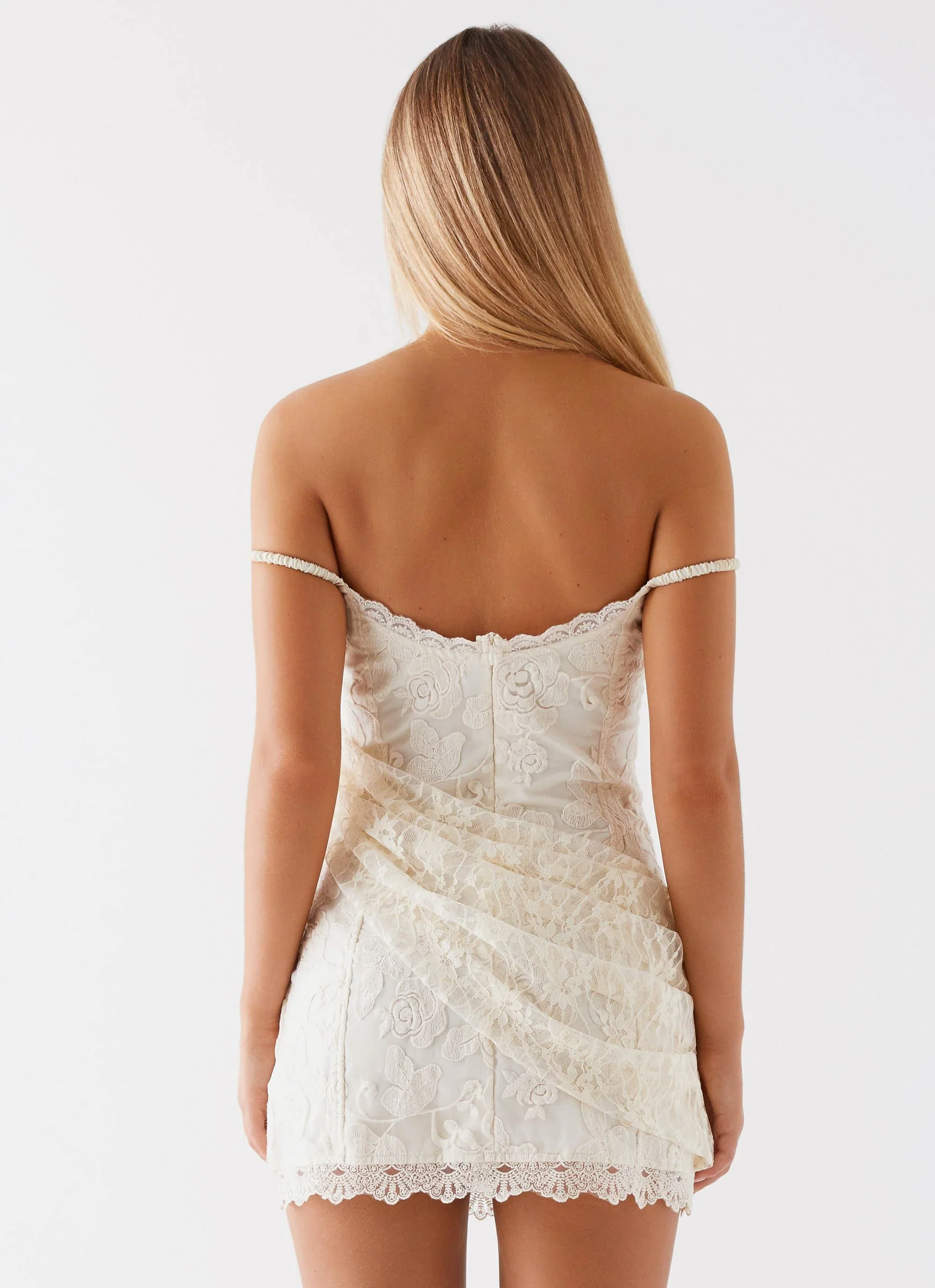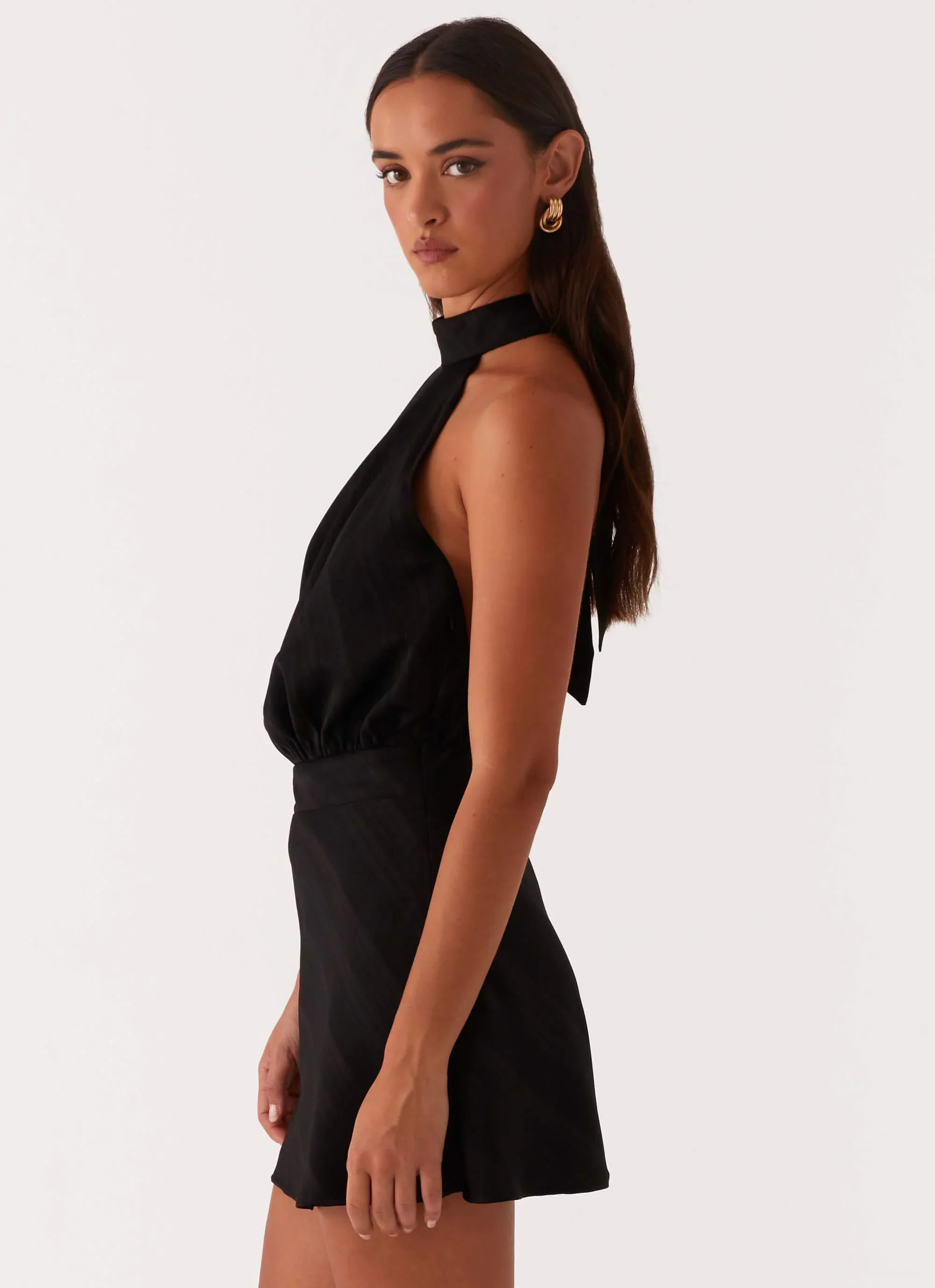 Avalia Backless Scarf Mini Dress - White Polka Dot