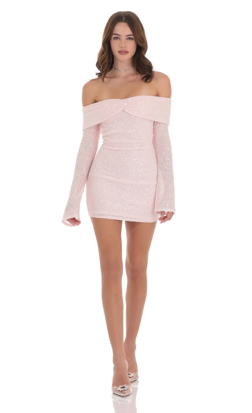 Sequin Off Shoulder Dress in Pink