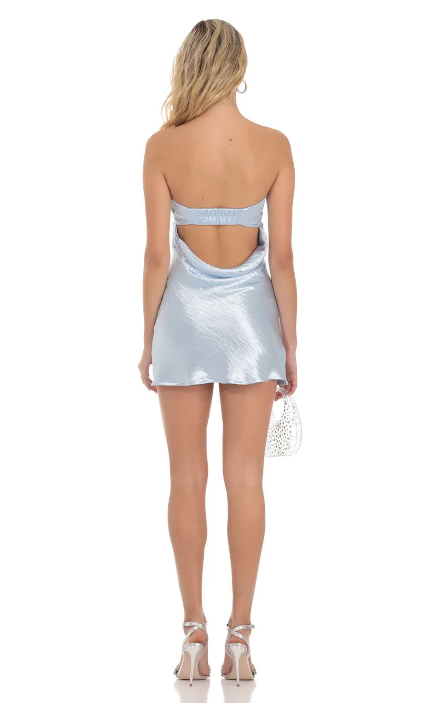 Satin Strapless Slip Dress in Light Blue