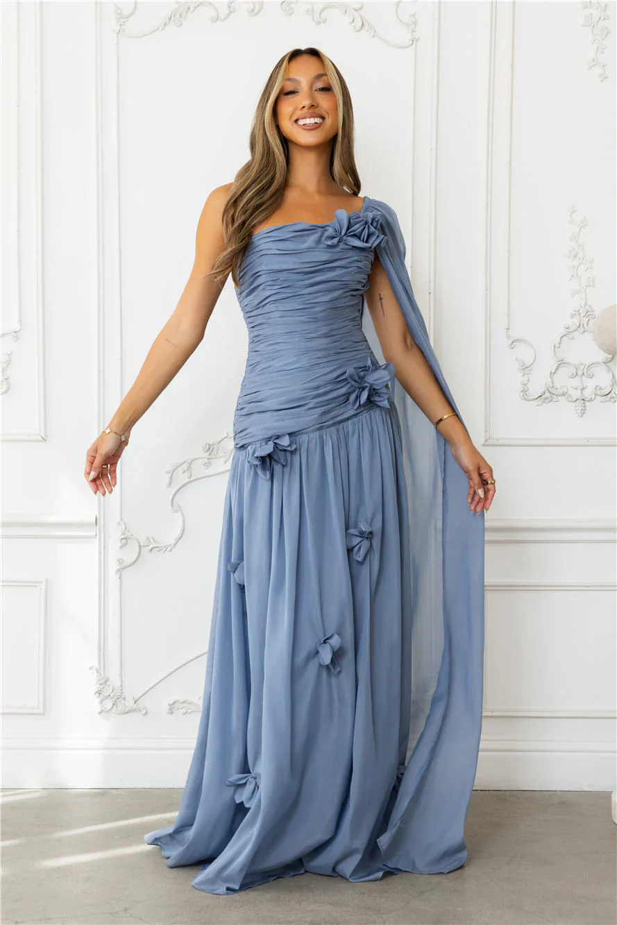 Silver Breeze One Shoulder Maxi Dress Slate