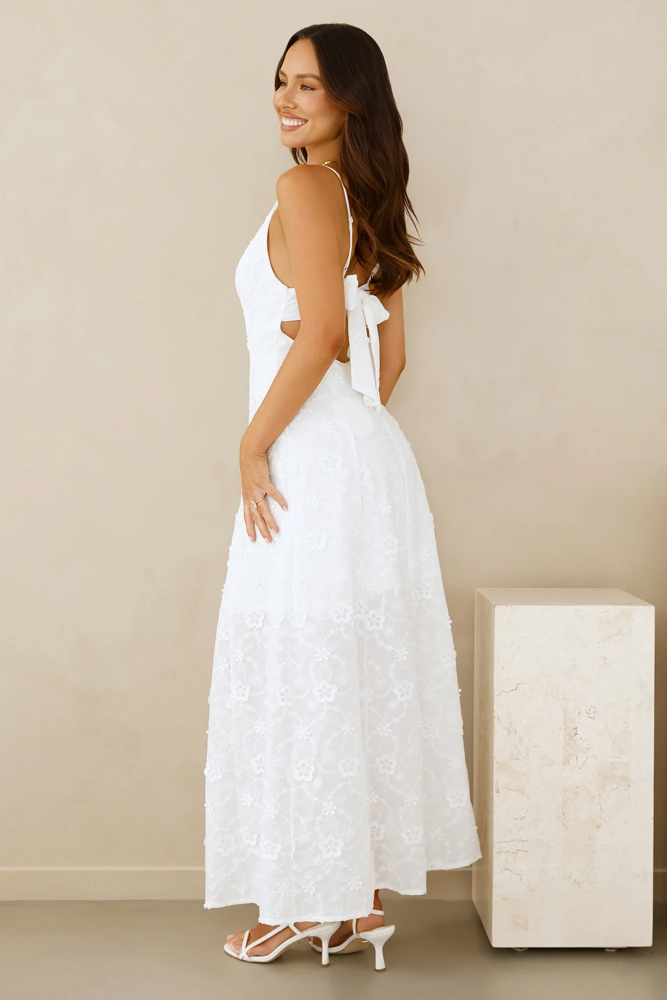 Selene Maxi Tiered 3D Dress in White