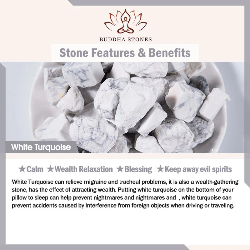 White turquoise can alleviate migraine and tracheal issues. It is also known as a wealth - gathering stone, which can attract prosperity. Placing white turquoise under your pillow while sleeping can help prevent nightmares. When driving or traveling, it can protect you from accidents caused by external interference.