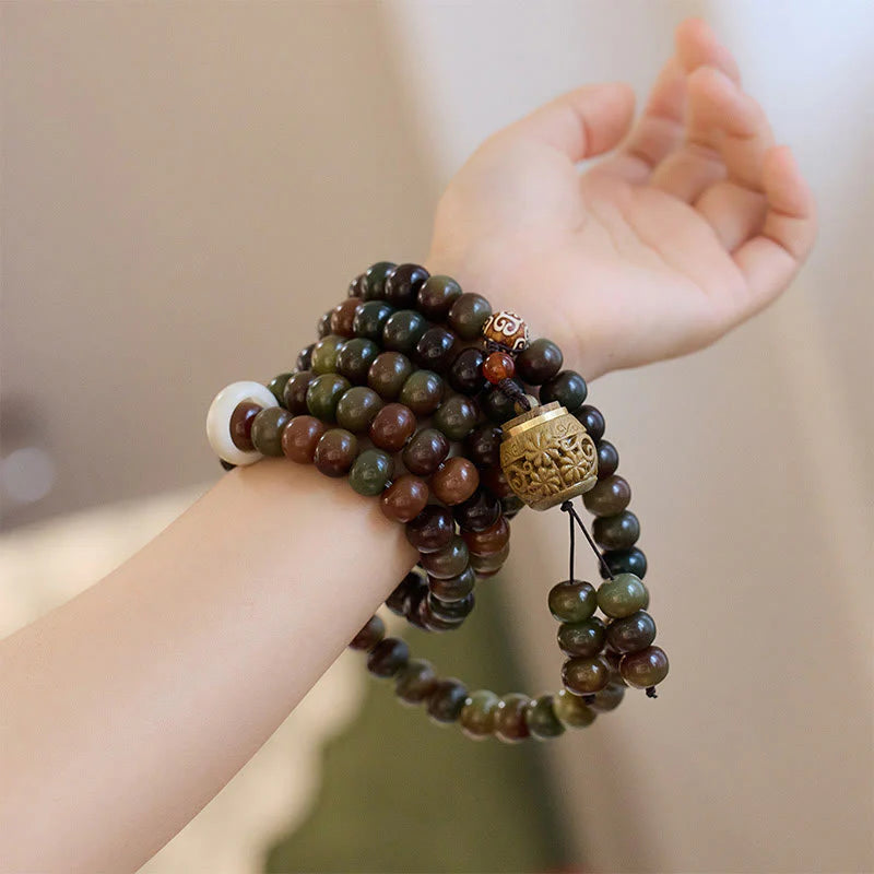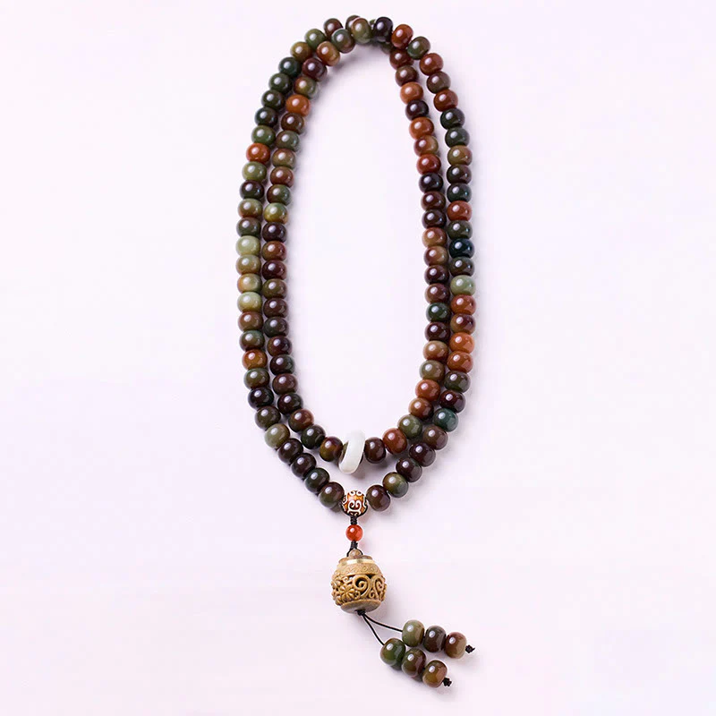 Shield your spirit with this 108 Mala Dunhuang Color Bodhi Seed Dzi Bead Bracelet. Each bead is believed to hold protective powers, and the Dzi bead serves as a powerful charm against evil. Inspired by the vivid colors of Dunhuang, this bracelet symbolizes protection on your spiritual path from negative forces. Wear it as a source of positivity and a channel for spiritual strength.