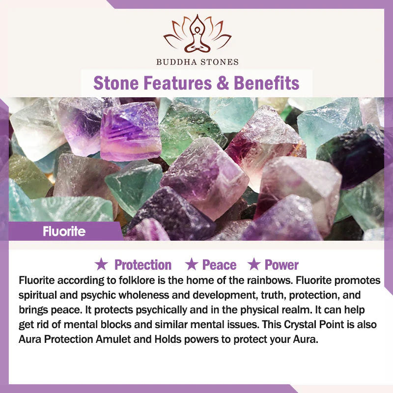 Fluorite according to folklore is the home of the rainbows. Fluorite promotes spiritual and psychic wholeness and development, truth, protection, and brings peace. It protects psychically and in the physical realm. It can help get rid of mental blocks and similar mental issues. This Crystal Point is also Aura Protection Amulet and Holds powers to protect your Aura.