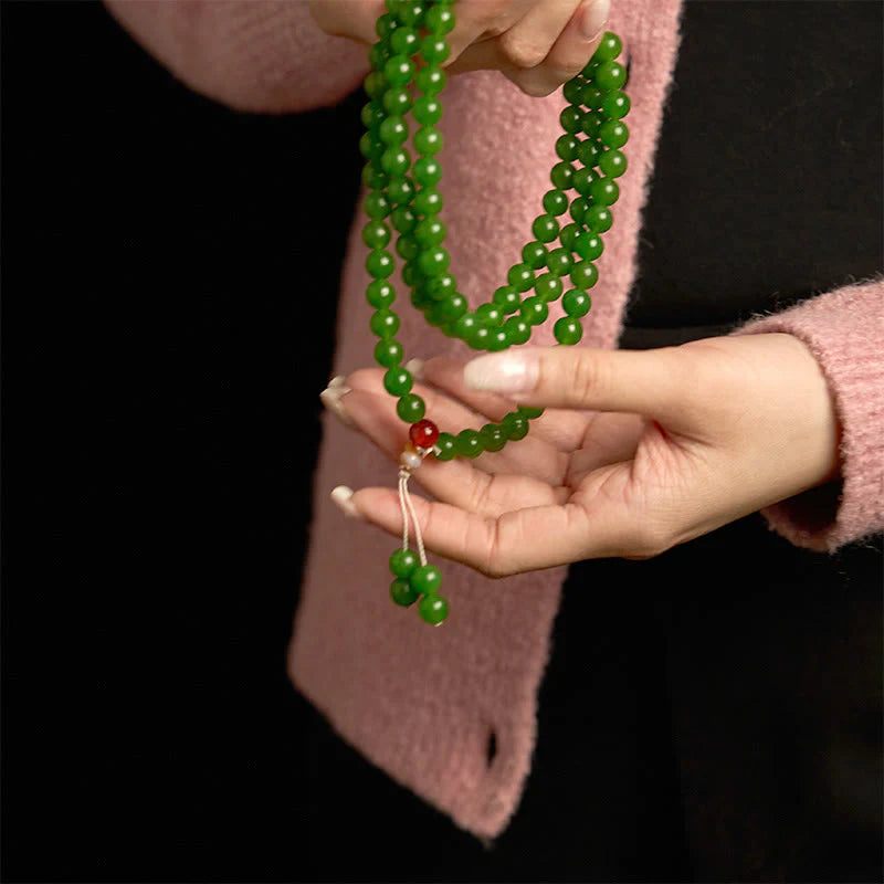 Cyan Jade Bracelet made of 108 natural beads symbolizes peace and good luck. Cyan Jade beads are known for their symbolic link to harmony and balance. Designed for meditation or daily mindfulness, the 108 beads of the bracelet stand for spiritual perfection. Its soothing color and meaningful design make it a valuable item for personal development and motivation.