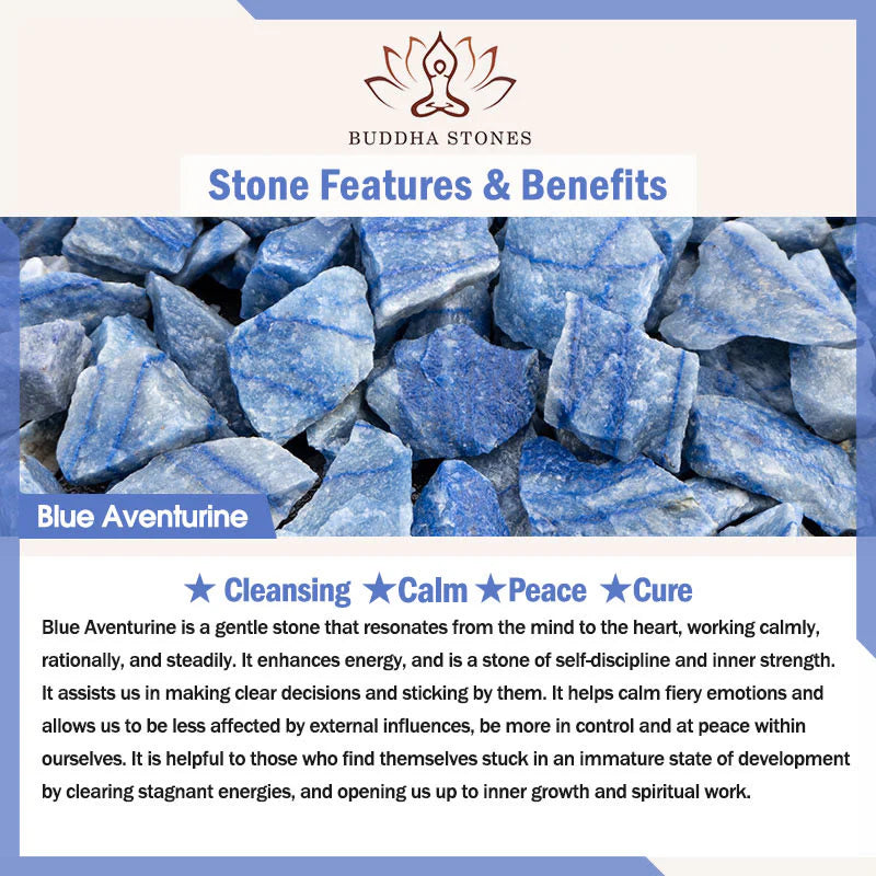 Blue Aventurine is a gentle gemstone that connects the mind and the heart, acting calmly, rationally, and steadily. It boosts energy and is a symbol of self - control and inner strength. It aids in making clear decisions and adhering to them. It helps soothe intense emotions, making us less influenced by external factors, more in control, and at peace with ourselves. It is beneficial for those who feel stuck in an underdeveloped state by clearing blocked energies and enabling inner growth and spiritual exploration.