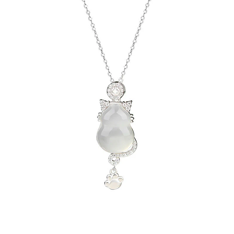 White Jade Gourd Cat Necklace Pendant showcases a charming white jade gourd pendant made with either 925 sterling silver or 14K gold. This captivating item represents protection and good luck, based on traditional symbolism. The gourd shape is thought to repel negative forces and create a feeling of security and comfort. It's perfect for those looking for a spiritual bond and a significant accessory.