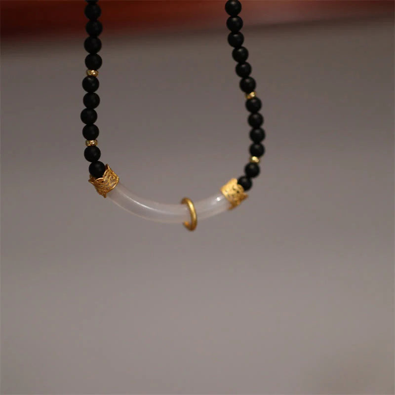 Combine style and protection with this 925 Sterling Silver Black Onyx Chalcedony Beaded Necklace Pendant. The combination of real black onyx and chalcedony beads not only improves your appearance but also brings the energy of protection and grounding. Upgrade your jewelry collection with this meaningful and fashionable necklace.