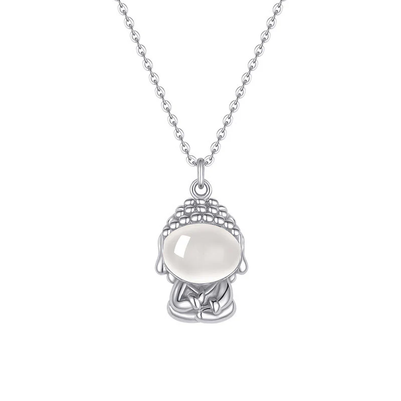 Formless Buddha Positive Necklace Pendant combines tranquility and spiritual power. Chalcedony is known to bring calmness and emotional equilibrium, while the formless Buddha symbol stands for the journey to enlightenment and inner tranquility. Crafted from 925 sterling silver, this pendant represents purity, wisdom, and positive vibes, reminding you to stay centered and focused on your spiritual development. It's perfect for those in search of harmony, mindfulness, and a deeper connection to their spiritual path.