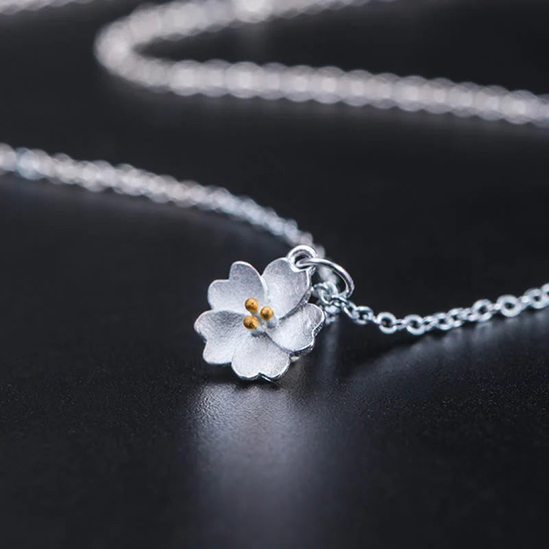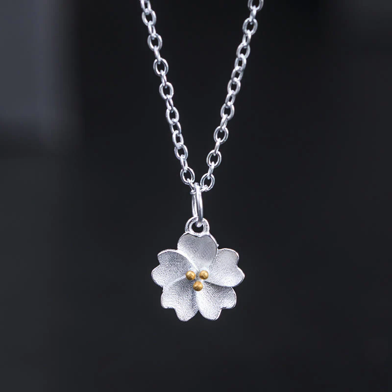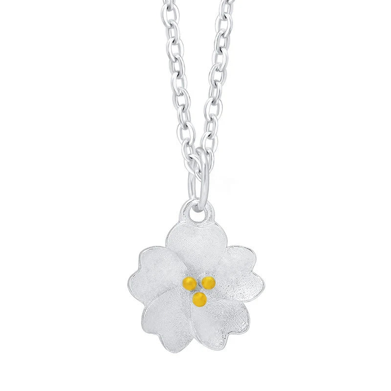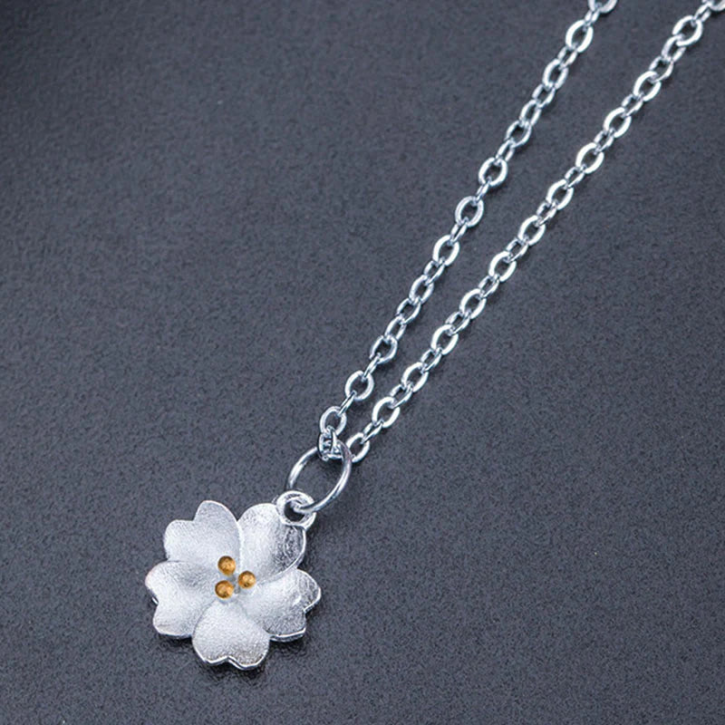 Feel the peaceful energy of this 925 sterling silver cherry blossom flower blessing necklace pendant. Made from 925 sterling silver, it adds calmness, protection, and beauty to your jewelry collection.
