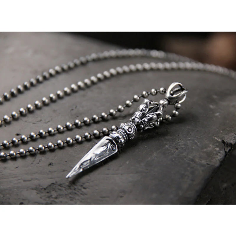 Embark on a spiritual exploration with this 925 sterling silver dorje vajra enlightenment necklace. The vajra, symbolizing both the indestructibility of a diamond and the irresistible force of a thunderbolt, represents strength and enlightenment. Combined with the soothing qualities of silver, this necklace provides protection, balance, and blessings, making it an excellent accessory for your spiritual pursuit.
