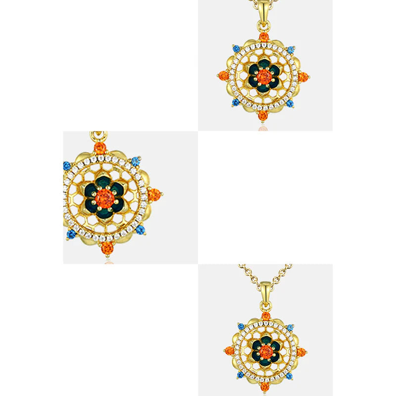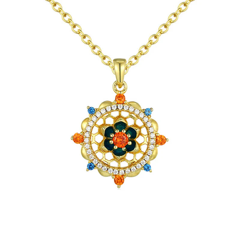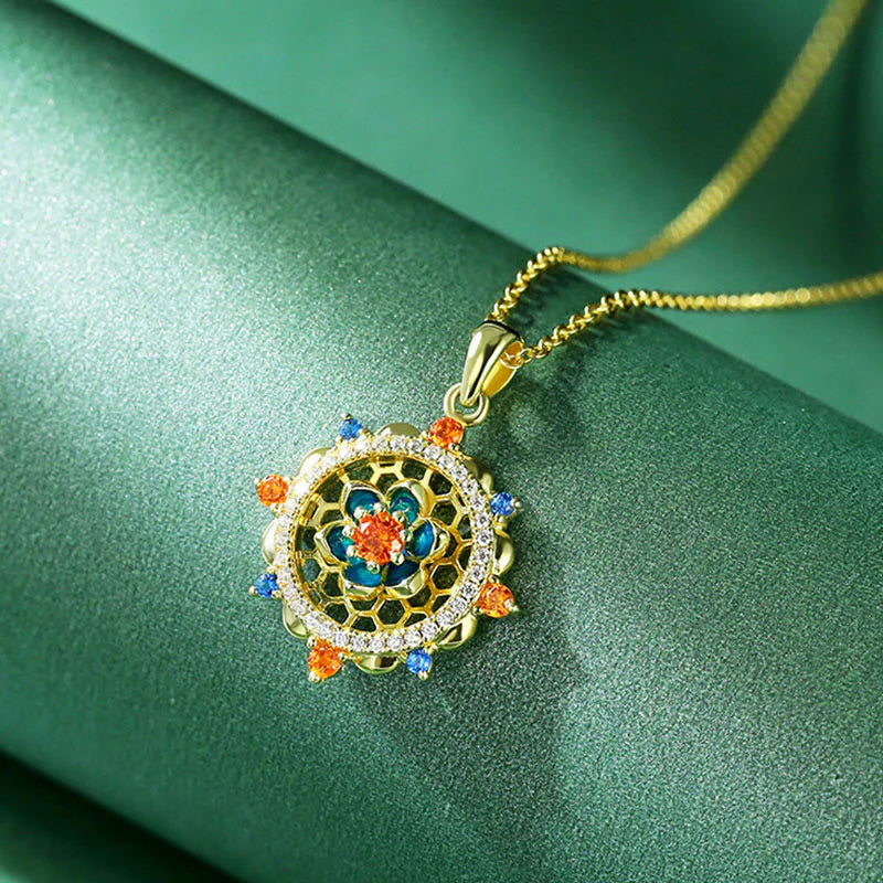 This silver lotus flower pendant is adorned with vivid zircons. It symbolizes new beginnings and personal development. Its graceful design makes it perfect for those looking for a meaningful accessory for special events or as a daily reminder of change and renewal.