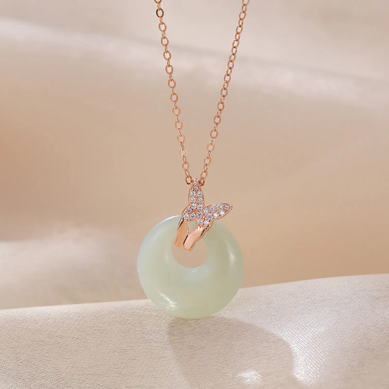 Enhance your style and bring good luck with this stunning necklace pendant. The pendant features a real Hetian Jade butterfly decorated with shiny zircon on a 925 Sterling Silver base. Symbolizing luck and transformation, it combines natural beauty and classic elegance, making it a valuable addition to your jewelry collection.
