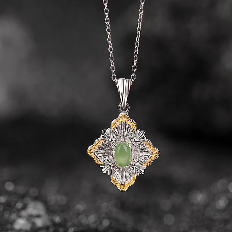 This exquisite necklace pendant can enhance your style and well - being. Made from 925 sterling silver plated with gold, it showcases a unique cyan jade rhombus design, which symbolizes luck and healing. It's a great addition to your jewelry collection, emitting positive energy and timeless elegance.