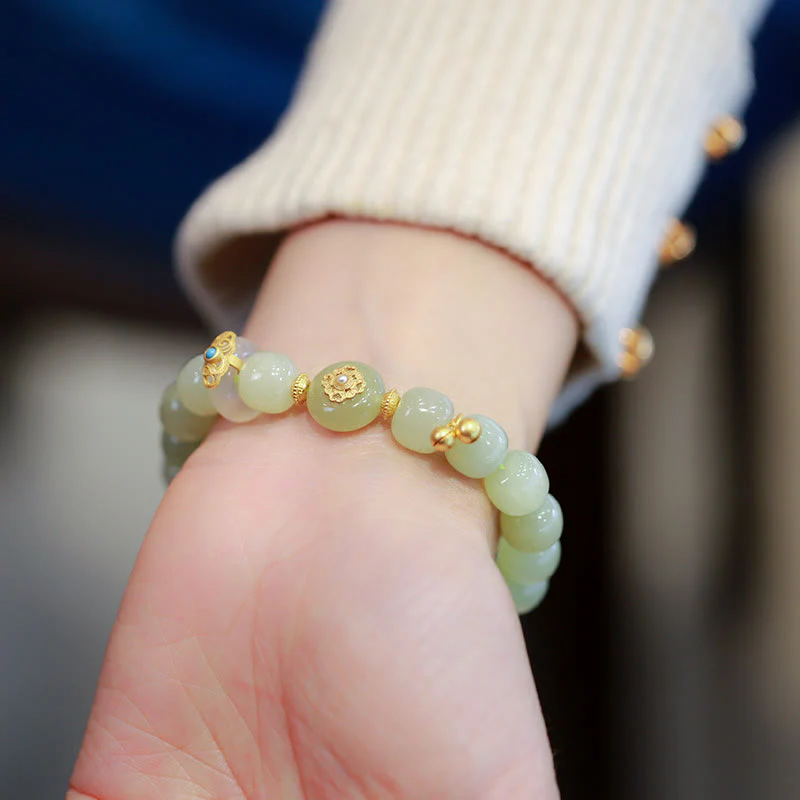 Jade has long been regarded as a precious stone. It is often used to help people achieve their wishes. Wearing a jade bracelet is said to attract positive vibes and well - being throughout one's life.