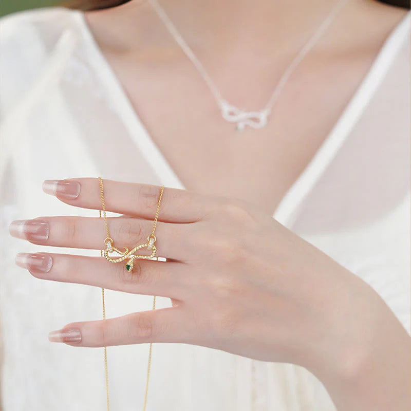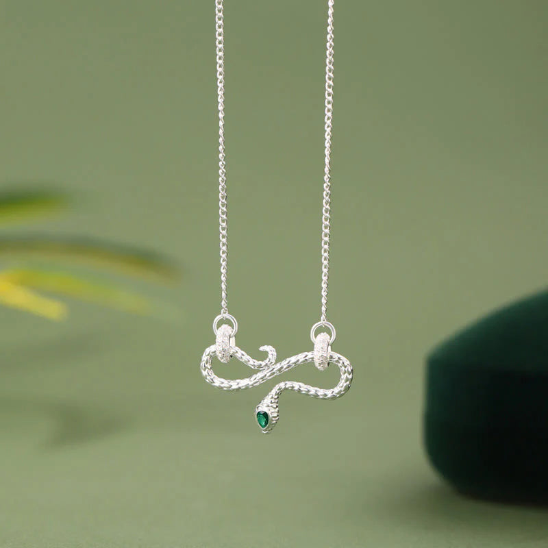 Silver Snake Coiling Necklace Pendant features a sterling silver snake intricately forming an infinity symbol, which stands for eternal blessings and continuous change. This pendant represents resilience, protection, and boundless potential. Made from high - quality 999 sterling silver, it serves as a powerful reminder of endless possibilities, personal development, and spiritual equilibrium, making it a meaningful amulet.